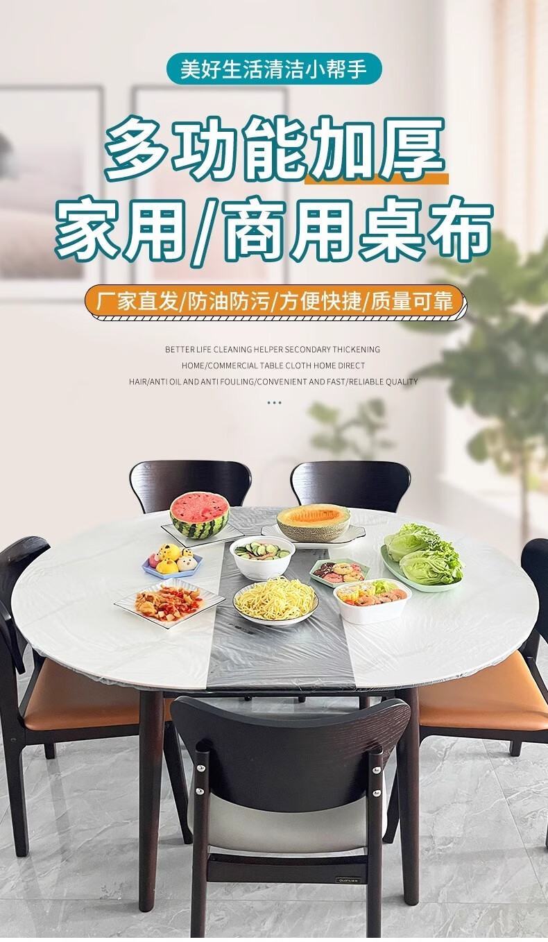Bedojia's new disposable tablecloth, ultra-thick elasticated automatic tie-down pe no-wash transparent table cover for restaurant food stalls, round table diameter 160cm-/square table diameter within 2.2 meters, red model (10 pieces)