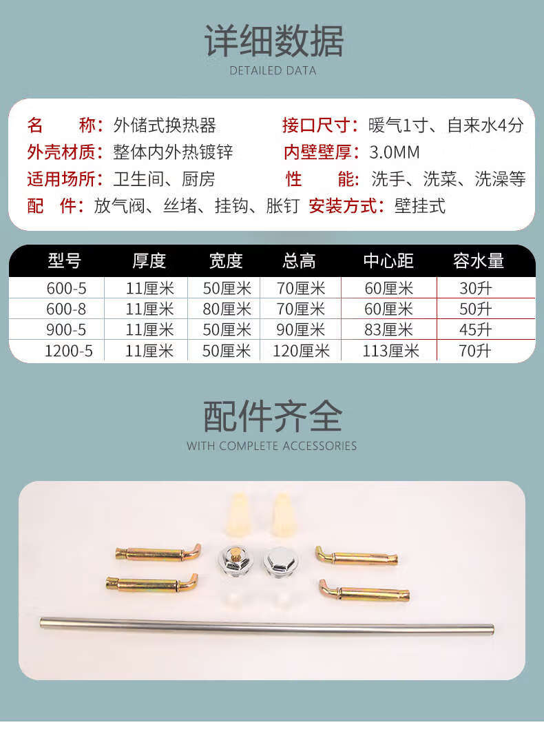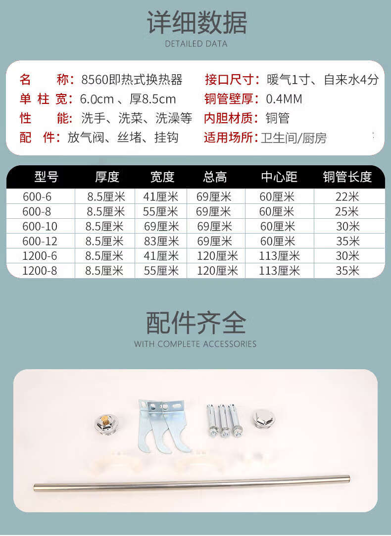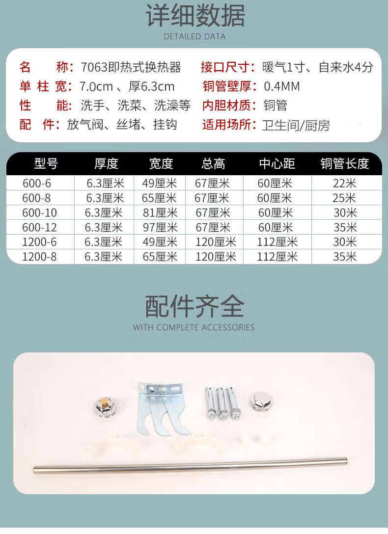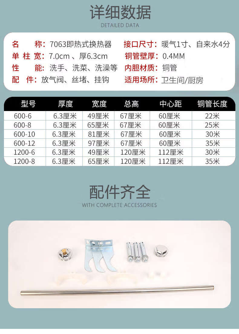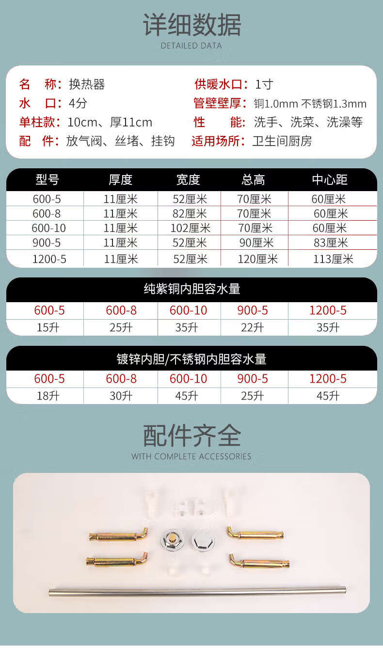 Water storage heat exchanger household bathroom plate type water heat exchanger radiator floor heating stainless steel liner water storage pure copper 50 liner 6008 note
