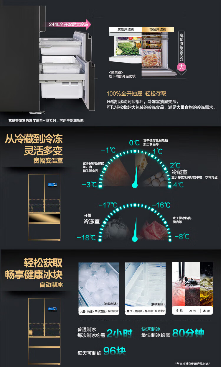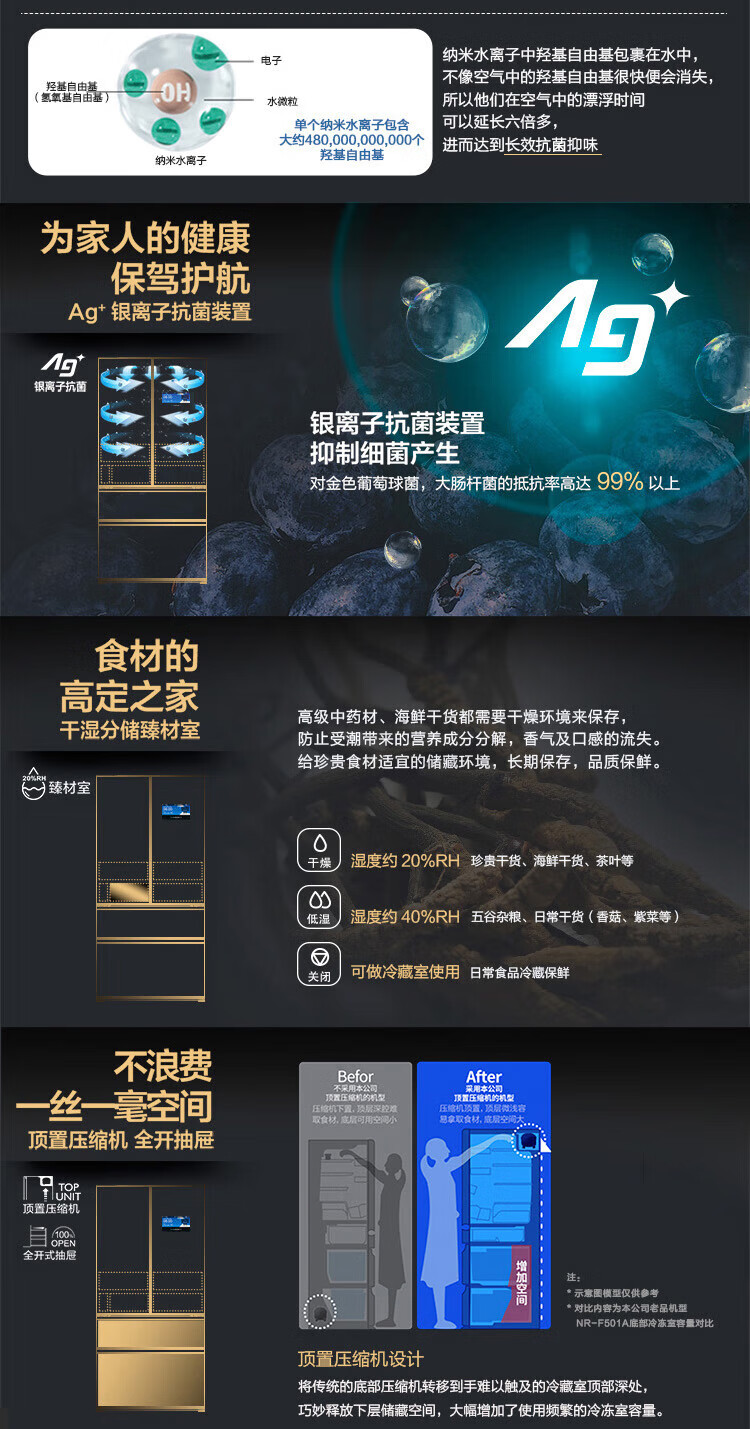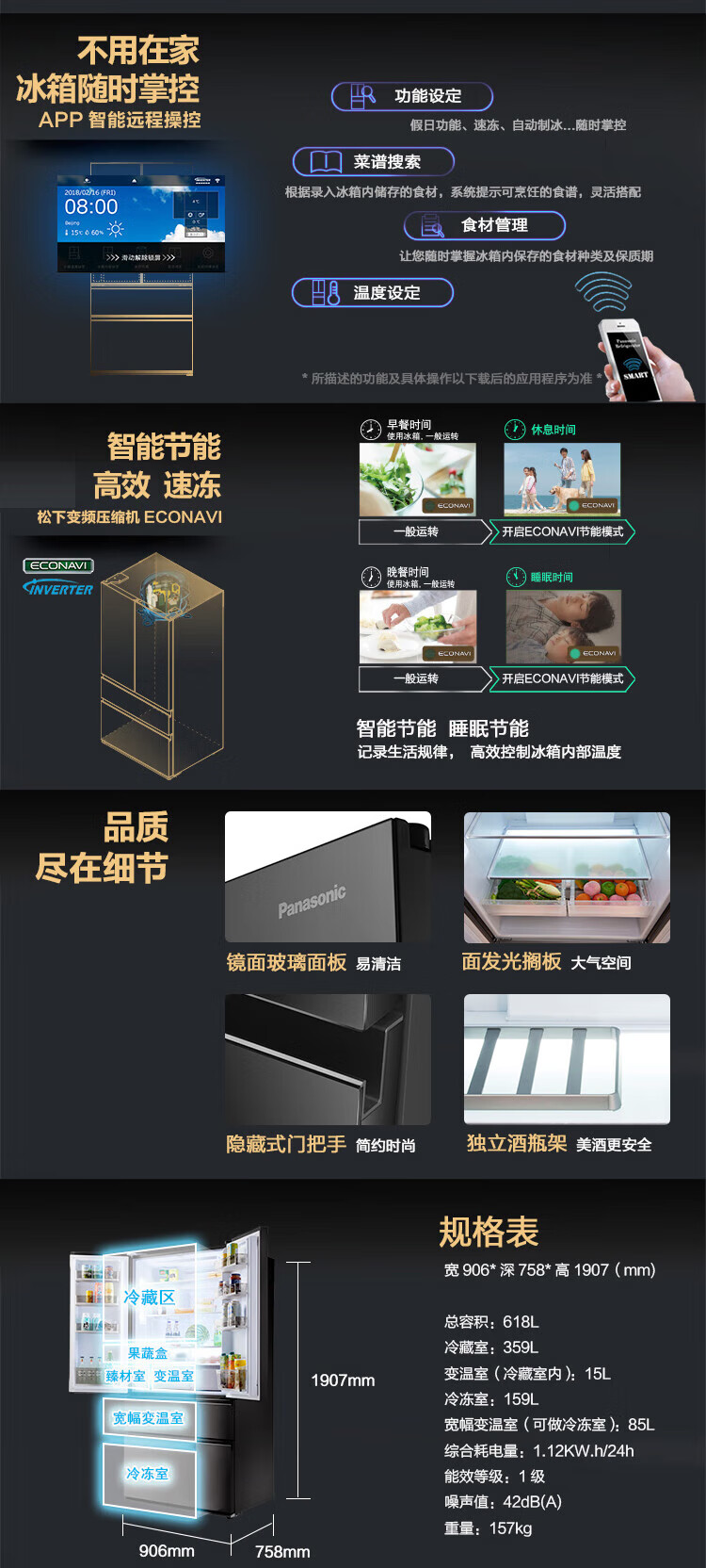 Panasonic 618-liter large-capacity French-style multi-door refrigerator, variable frequency air-cooling, frost-free, electric touch door, Nanoyi