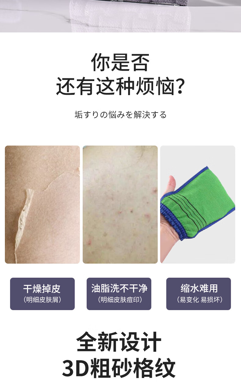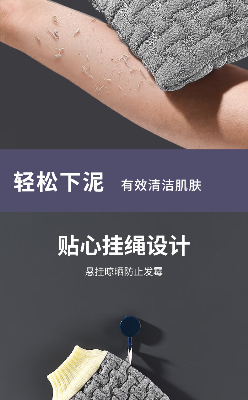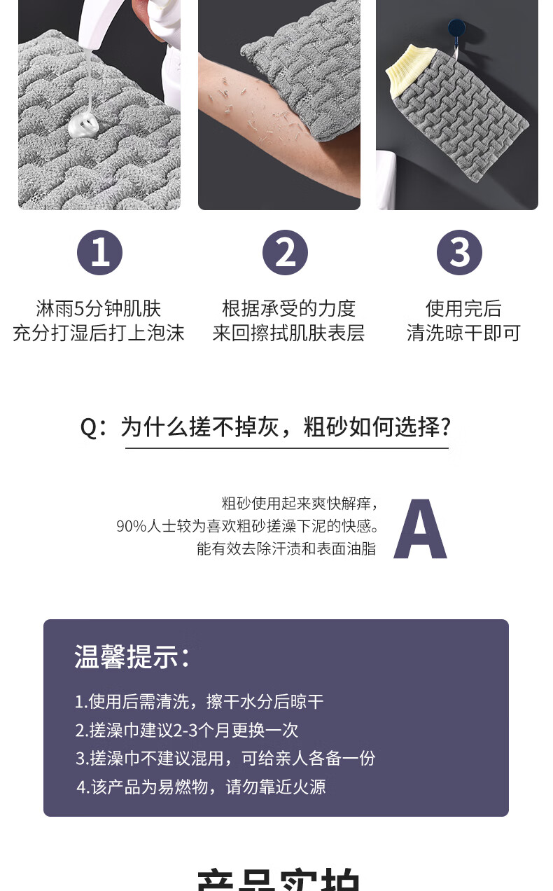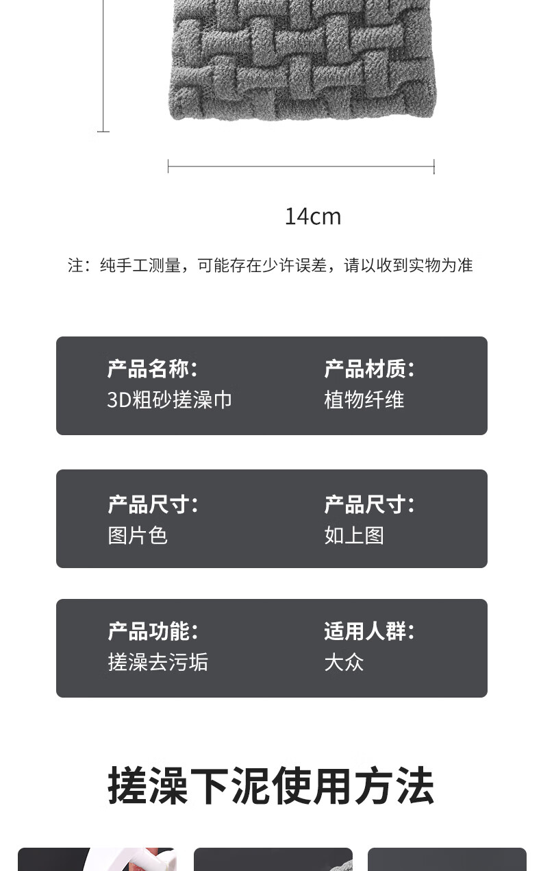 QIKAI men's special bath towel coarse sand strong mud rub back rub bath artifact household large gloves double-sided bath towel 3D geometric gloves 1 pack no specifications
