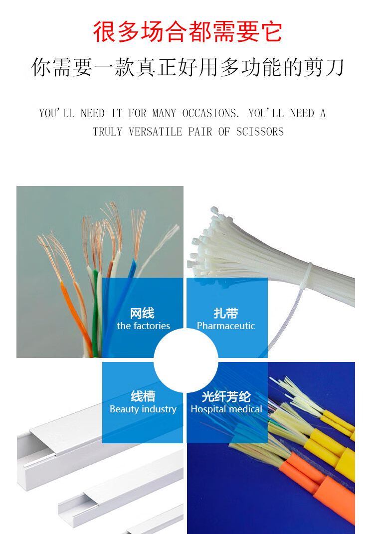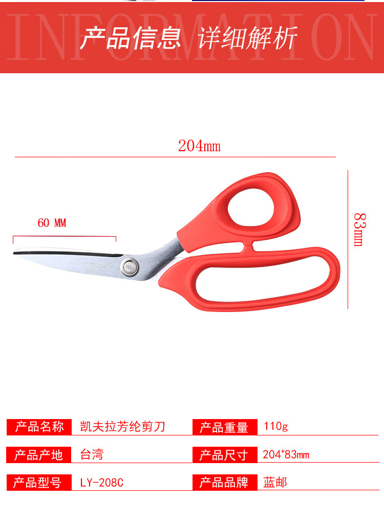 Blue Post large Kevlar aramid scissors with teeth, extended lengthened handle, Blue Post LY-208 scissors