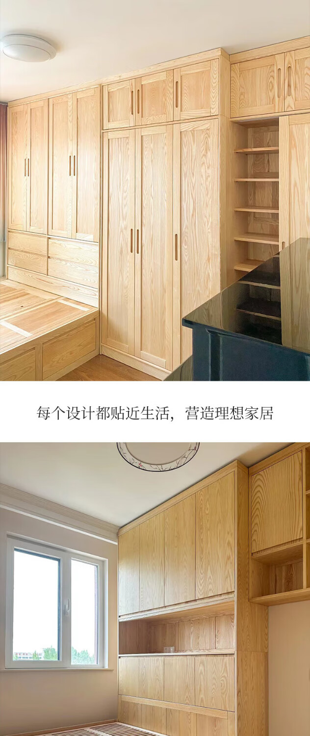 Shenyi whole house customized solid wood wardrobe ash wood large cabinet combination customized bedroom overall furniture logs make an appointment to consult customer service