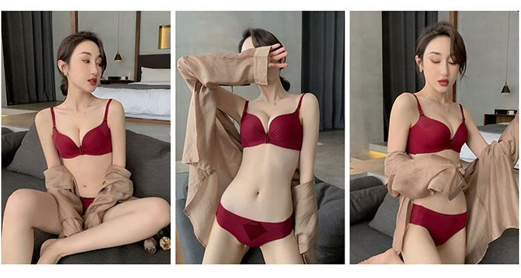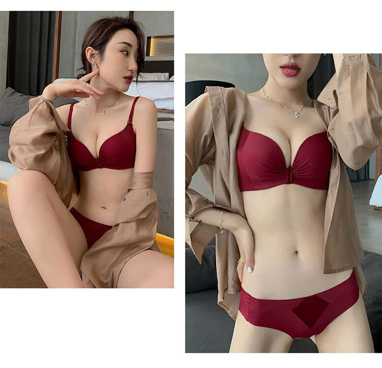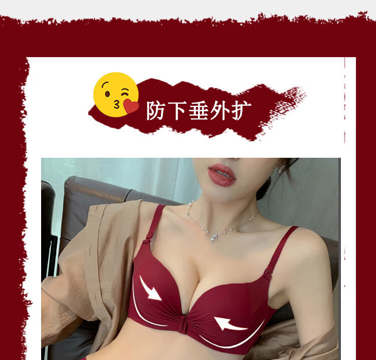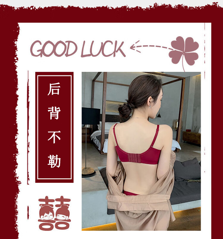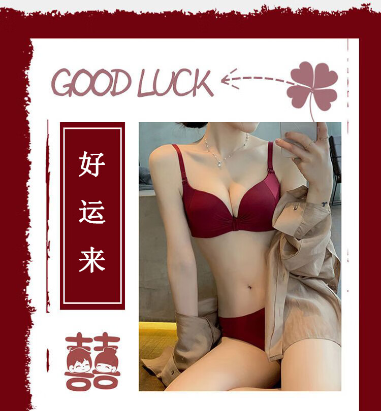 Maohuo Thin Year of the Horse Underwear Without Wires Push-Up Small Breasts Wedding Year of the Year Red Bra Set Valentine's Day Gift for Women Red Gift Box 75B =34B