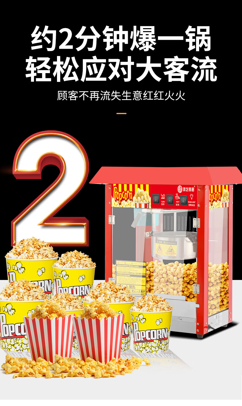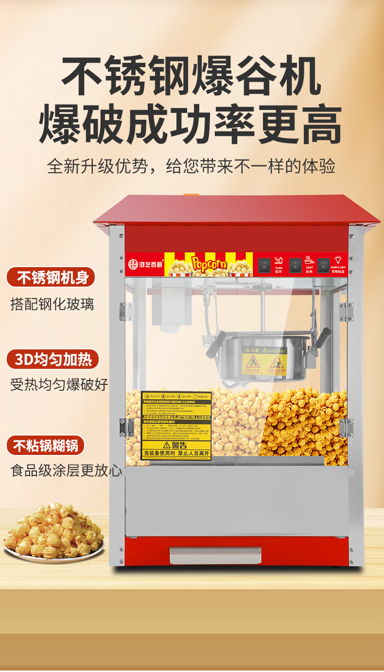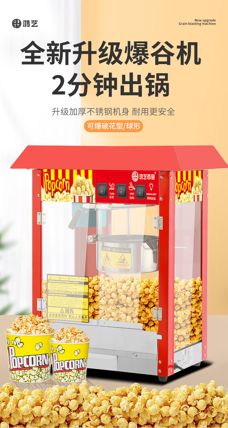 Hongyi Western Kitchen popcorn machine commercial new stall Internet celebrity small electric popcorn puffing machine stainless steel corn popcorn machine fully automatic spherical popcorn machine popcorn machine cart/with wheels