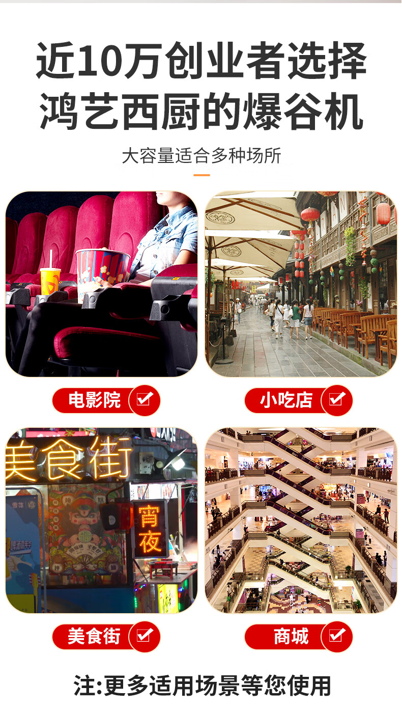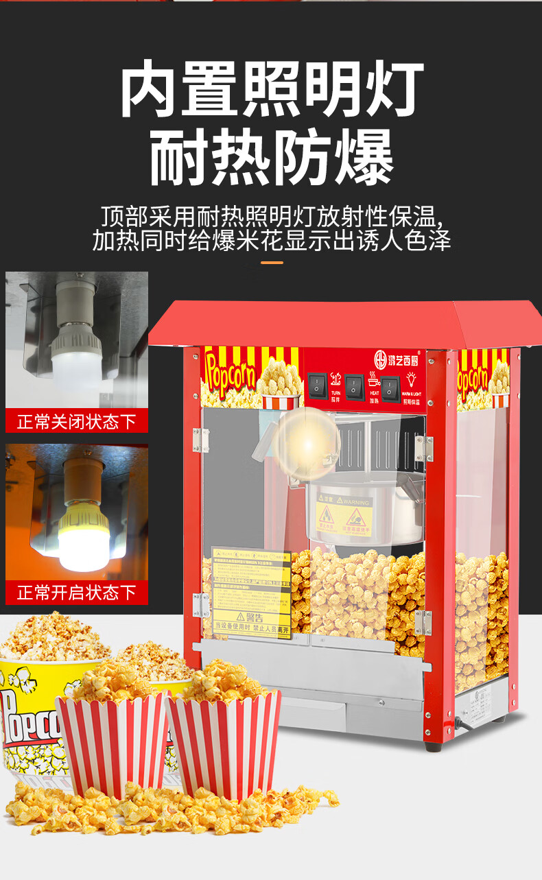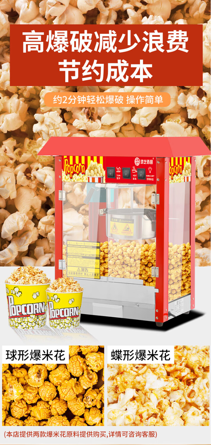 Hongyi Western Kitchen popcorn machine commercial new stall Internet celebrity small electric popcorn puffing machine stainless steel corn popcorn machine fully automatic spherical popcorn machine popcorn machine cart/with wheels