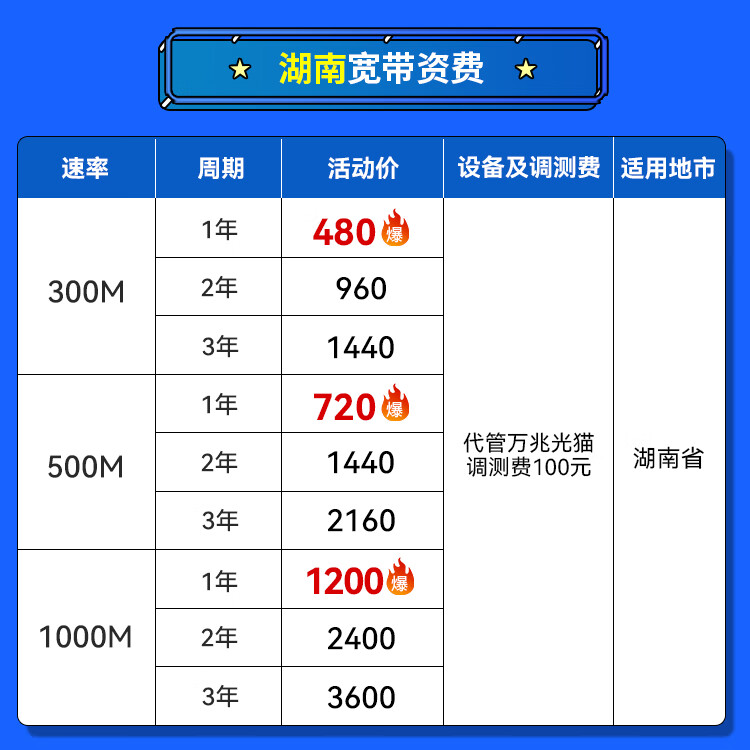 China Telecom's broadband processing and installation of new installations, TV broadband without card binding, is available in Hunan Province for 300-1000 300M per year (optical cat hosting) Hunan Province