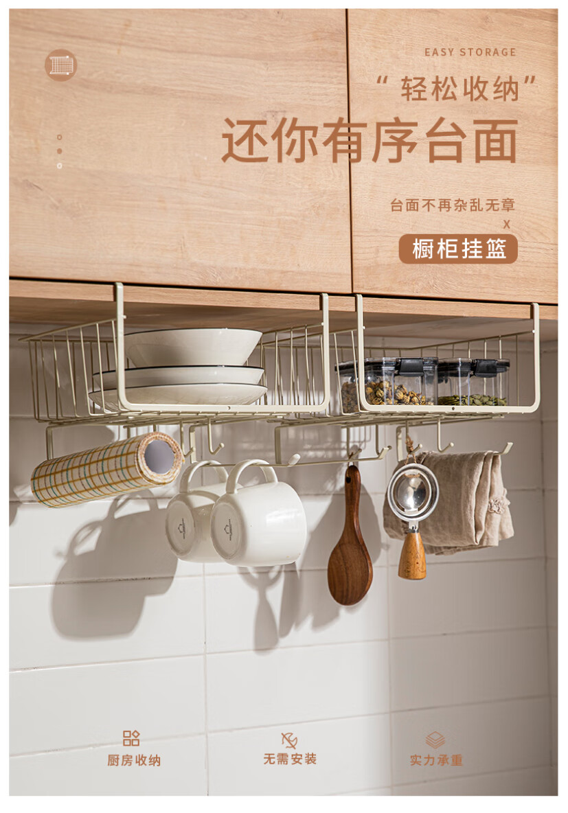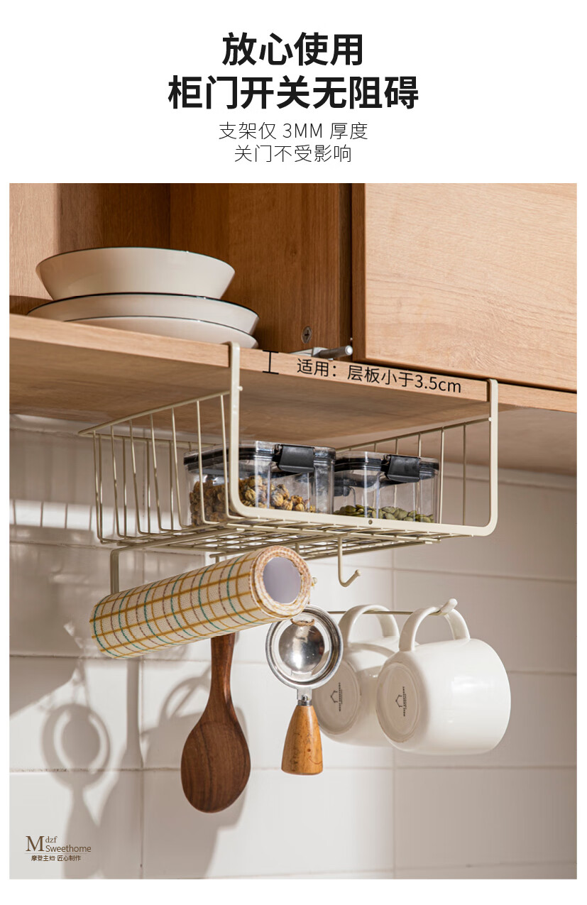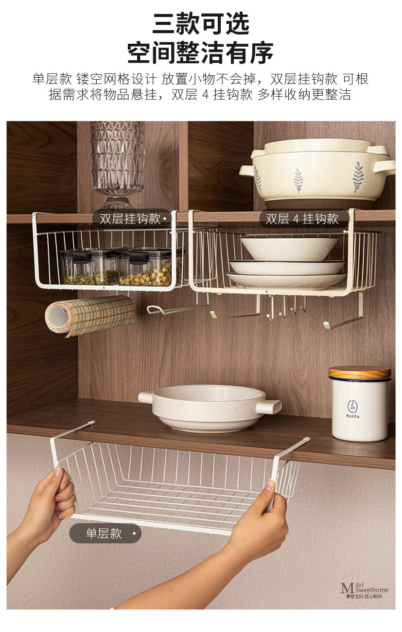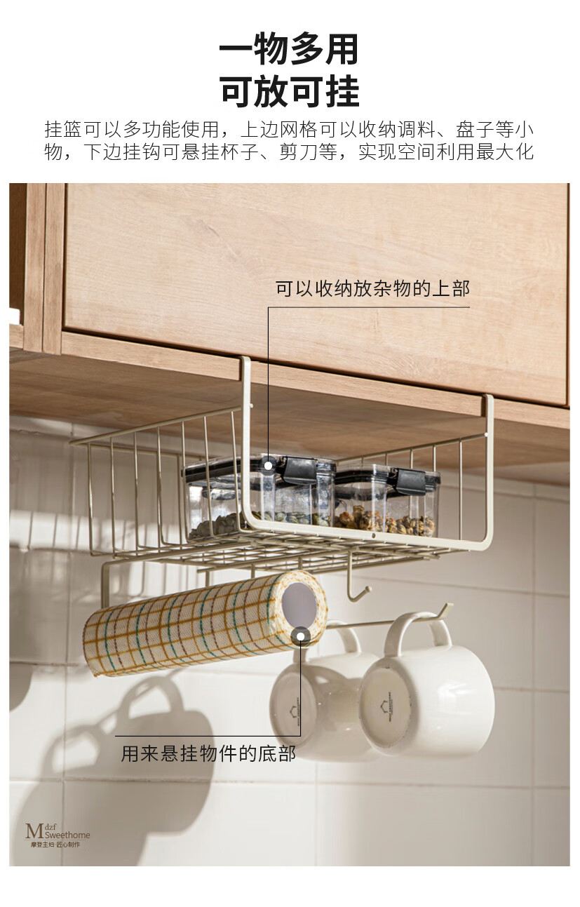 Modern Housewife Kitchen Shelf Layered Hanging Basket Hanging Storage Artifact Hanging Cabinet Paper Hanging Rack Under Wall Cabinet New Hanging Basket (White)
