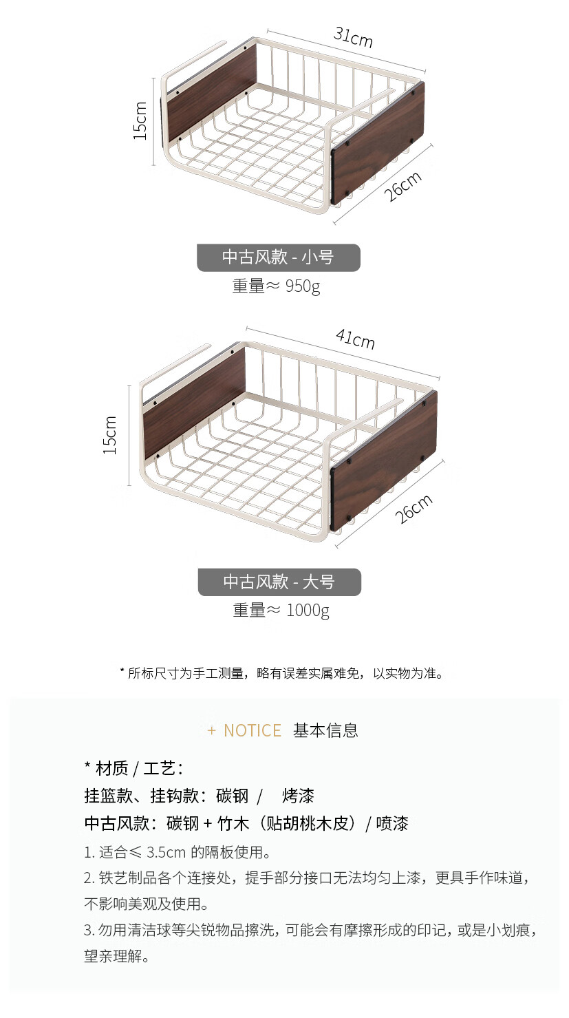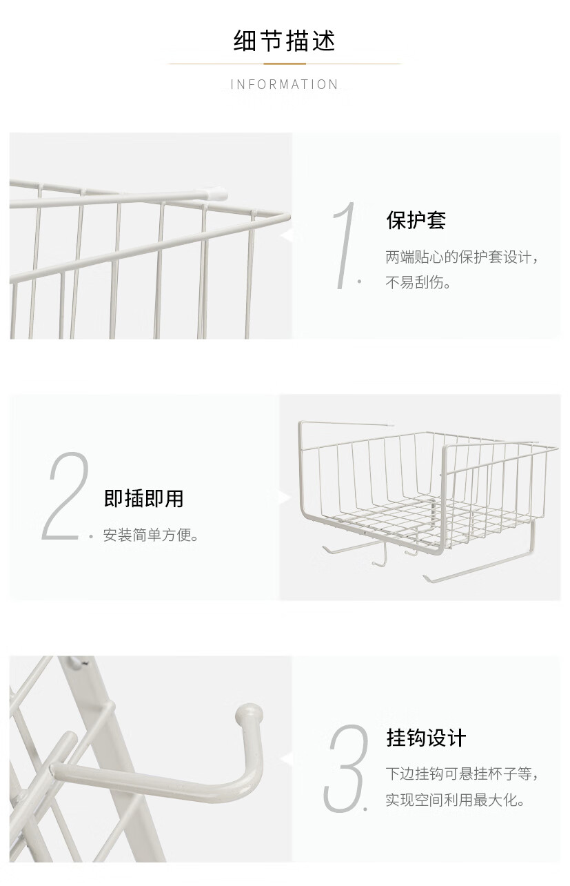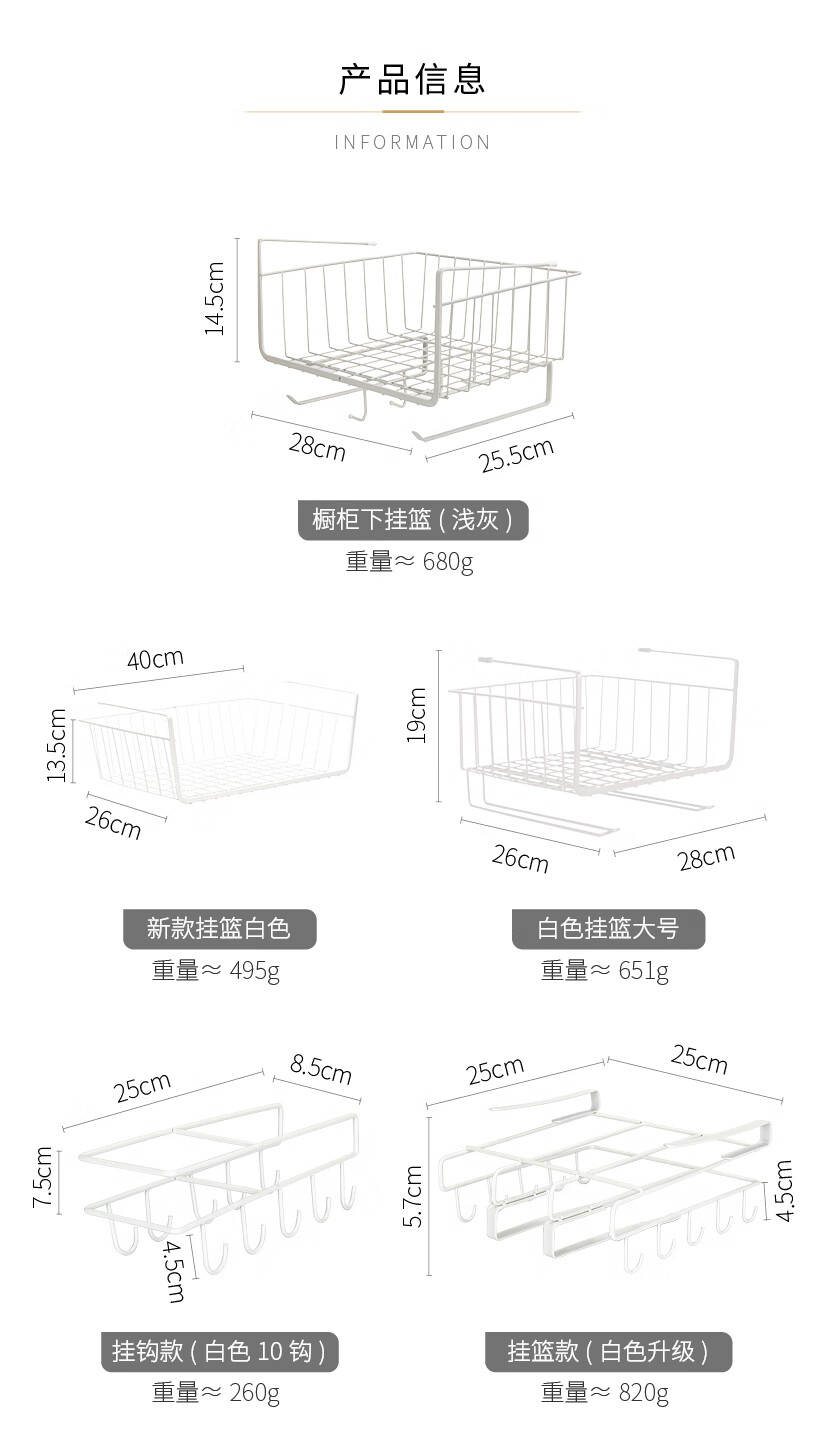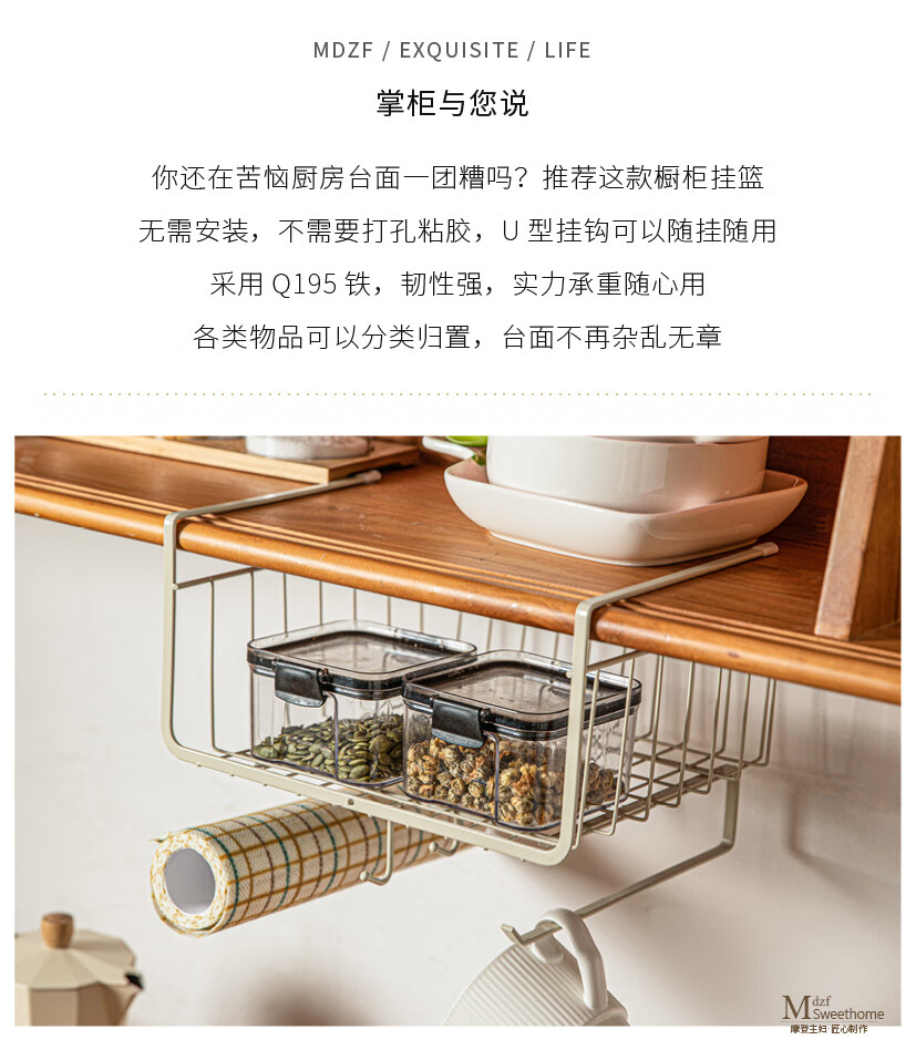 Modern Housewife Kitchen Shelf Layered Hanging Basket Hanging Storage Artifact Hanging Cabinet Paper Hanging Rack Under Wall Cabinet New Hanging Basket (White)