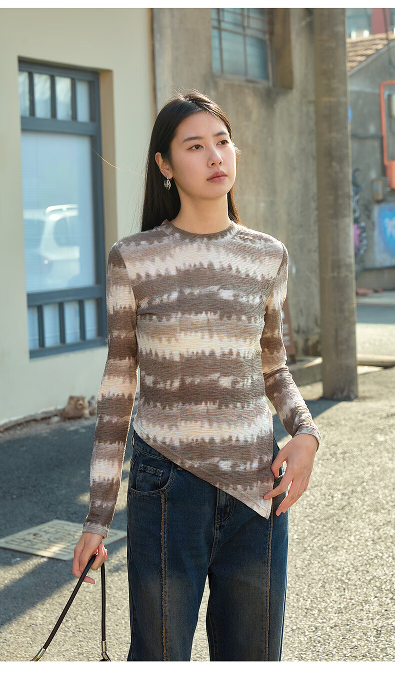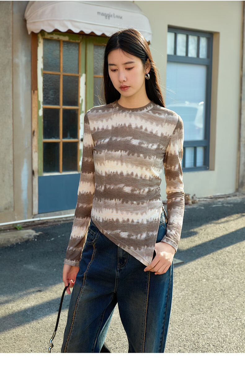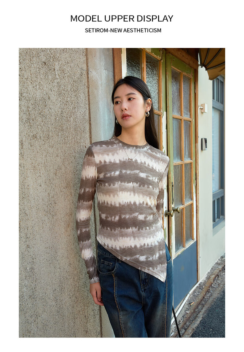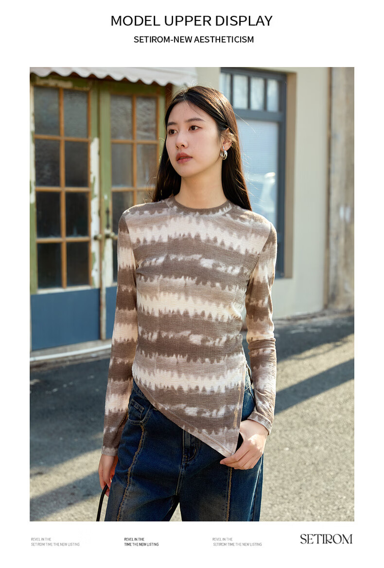 Nishimachi Village House (SETIROM) slim-fitting bottoming shirt for women 2024 spring new style irregular smudged fashionable top HA9105001 Coffee F