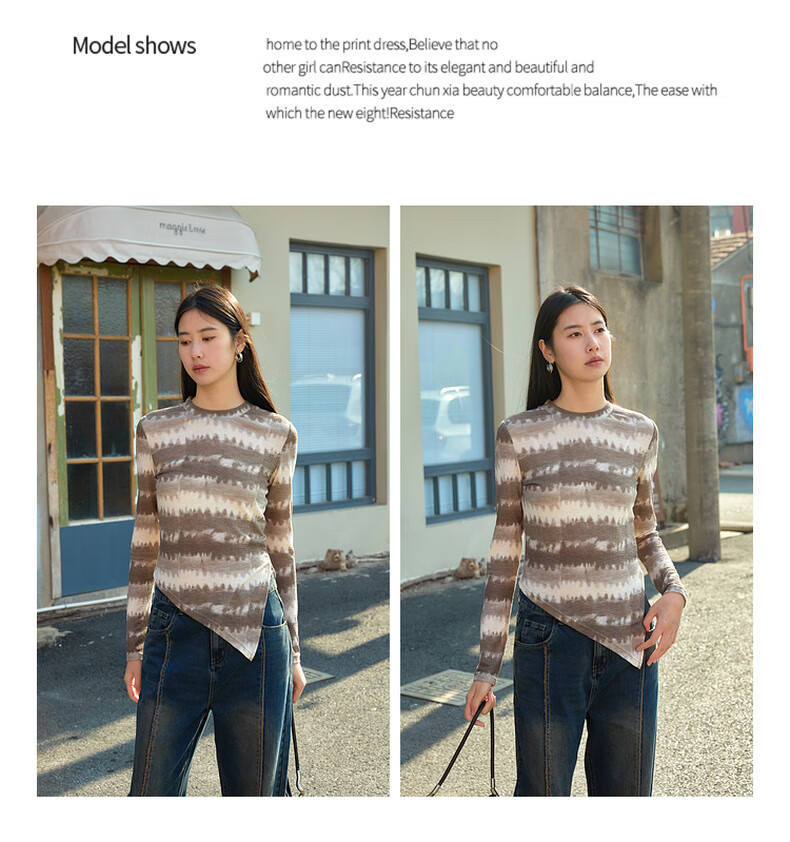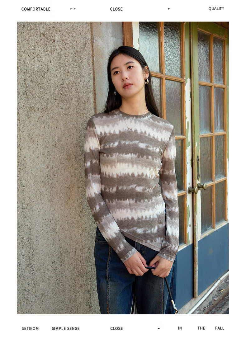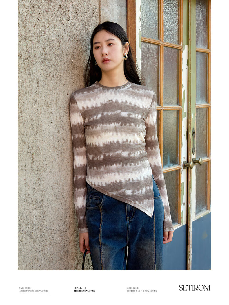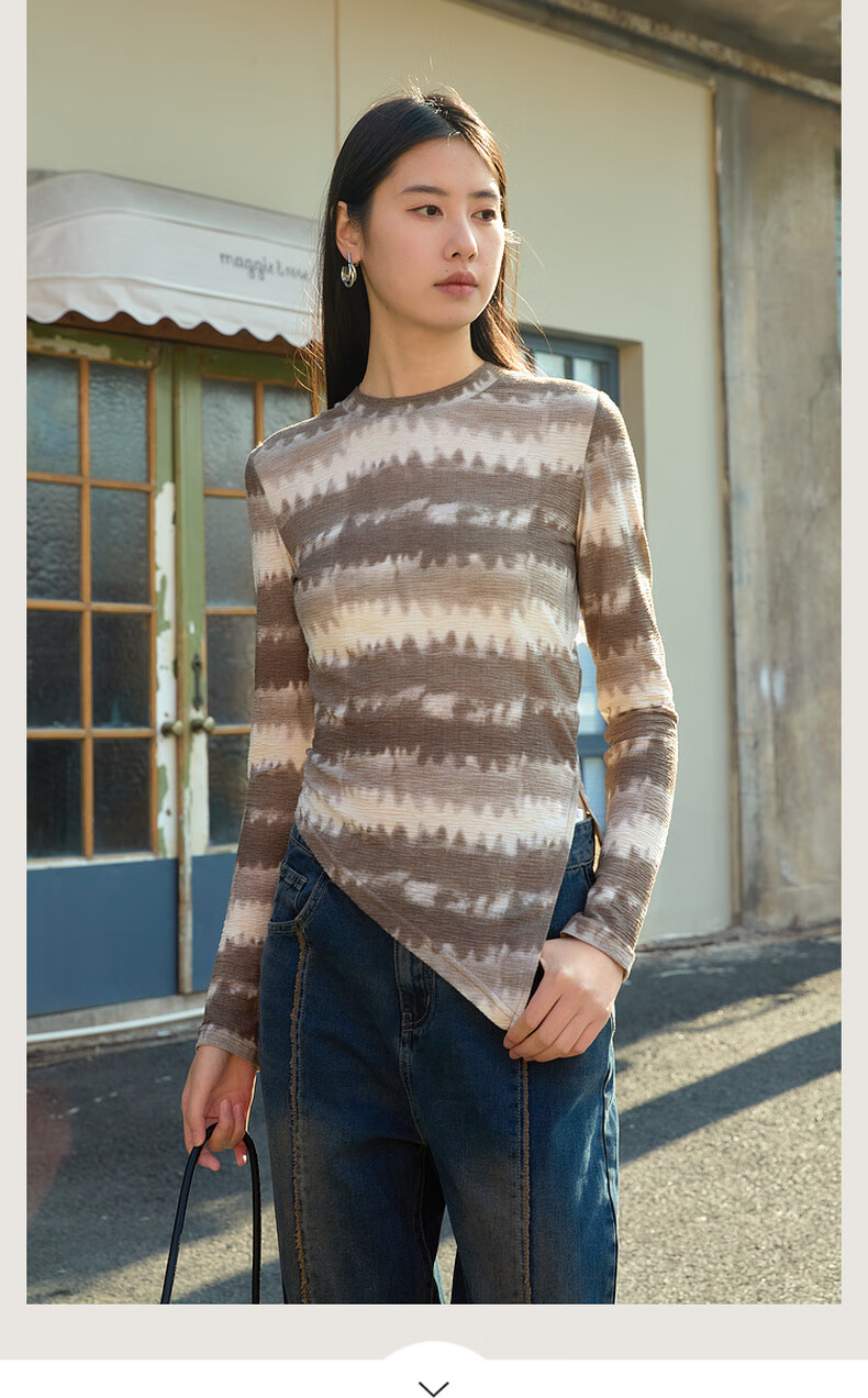 Nishimachi Village House (SETIROM) slim-fitting bottoming shirt for women 2024 spring new style irregular smudged fashionable top HA9105001 Coffee F