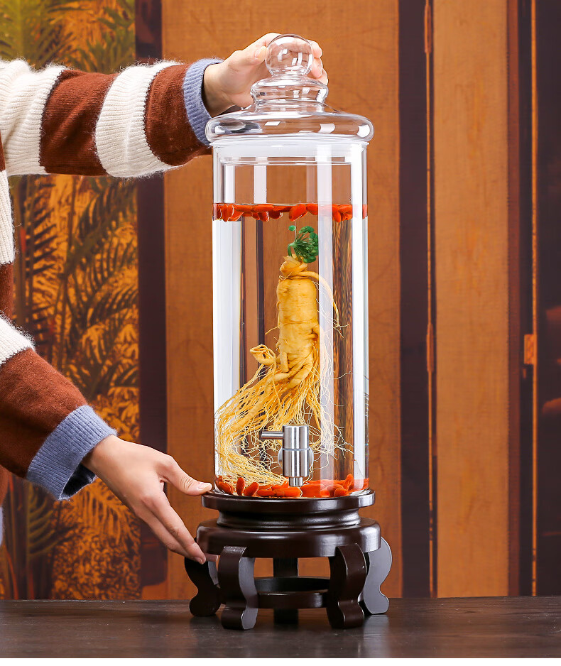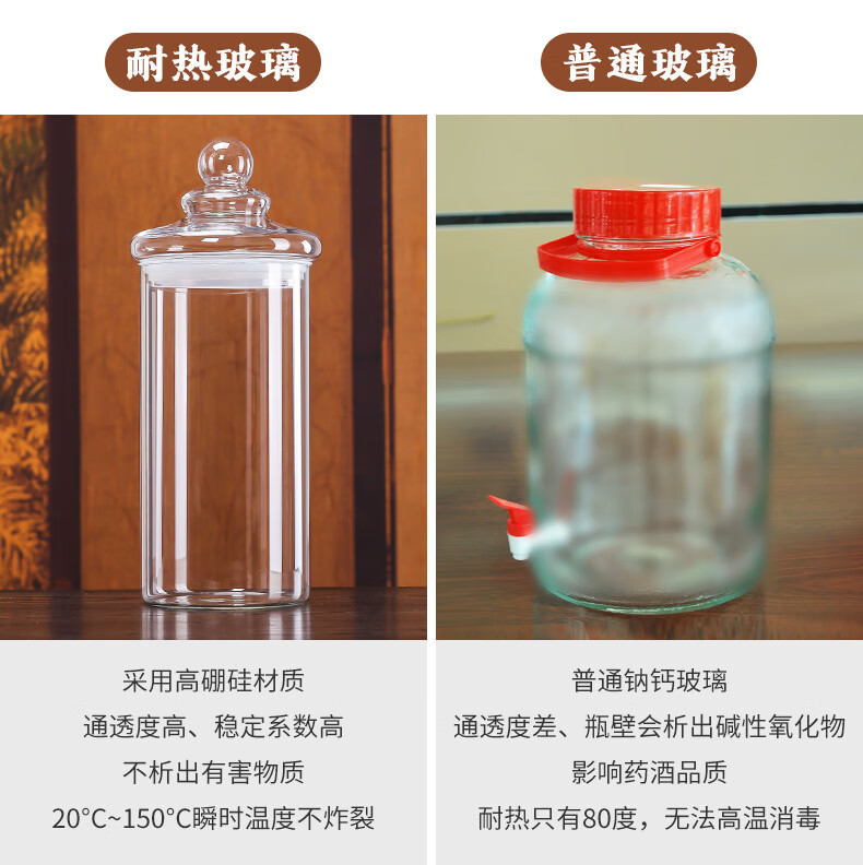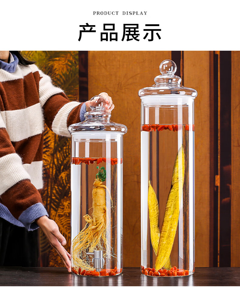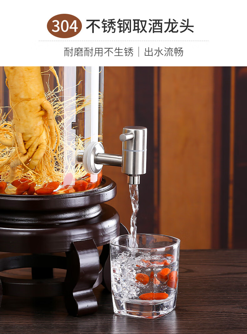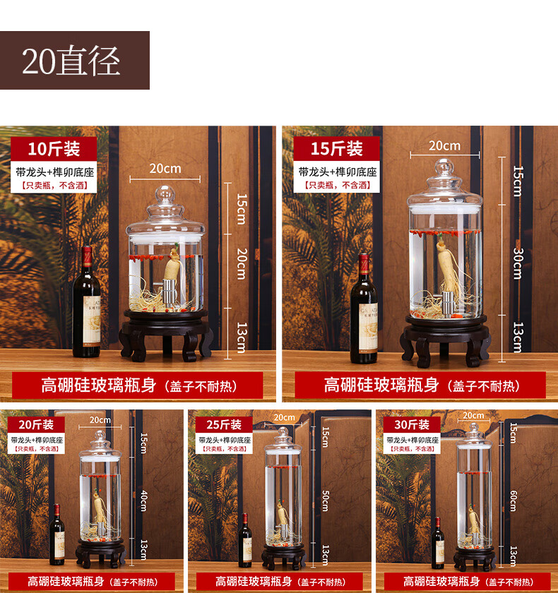 Shandetang high borosilicate glass wine container thickened wine bottle with faucet medicinal material ginseng wine jar sealed medicinal wine jar 10 catties + faucet + base (diameter 15cm)