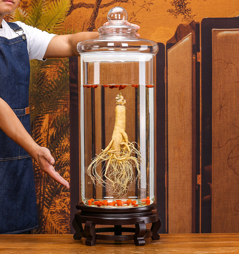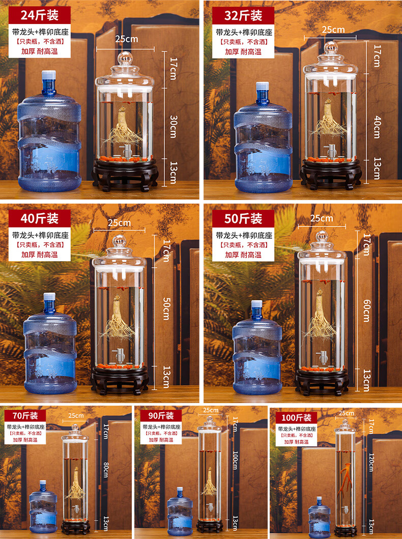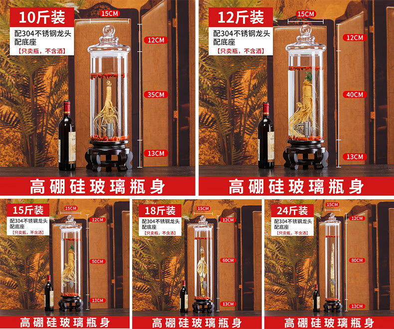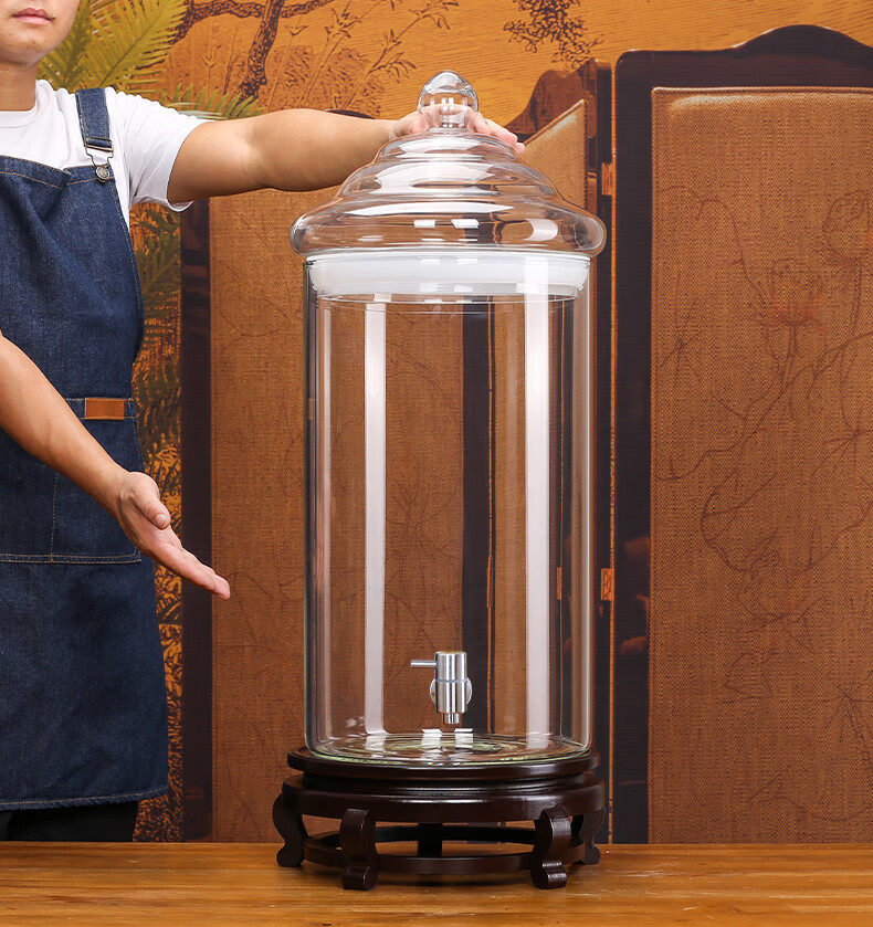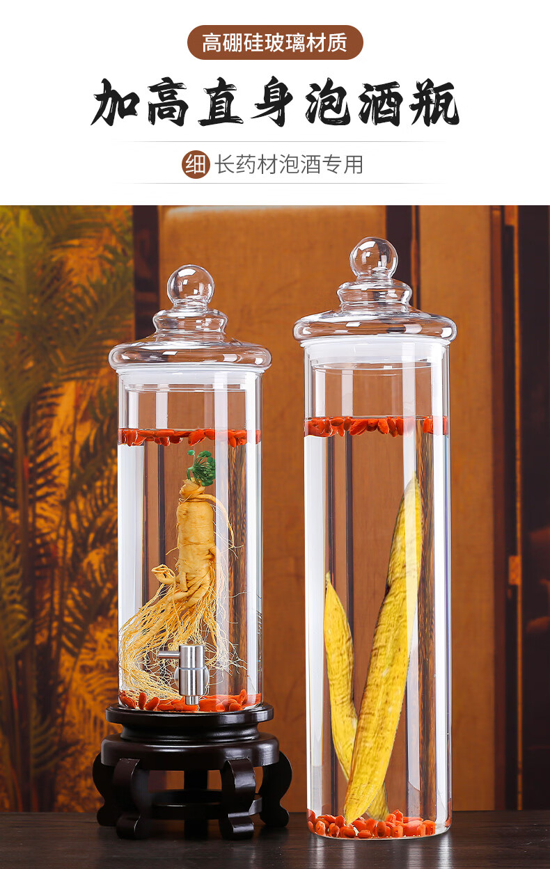 Shandetang high borosilicate glass wine container thickened wine bottle with faucet medicinal material ginseng wine jar sealed medicinal wine jar 10 catties + faucet + base (diameter 15cm)
