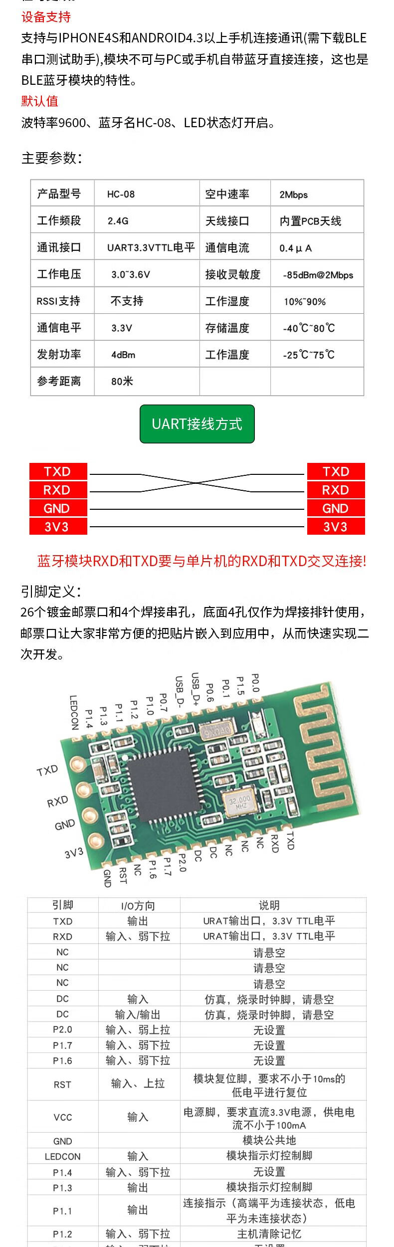 Dengshitang HC-05-06-08-02 master-slave integrated Bluetooth module board DIY wireless serial port transparent transmission electronic module BLE HC-08 Bluetooth 4.0 module with bottom plate welding pin header (1 piece)