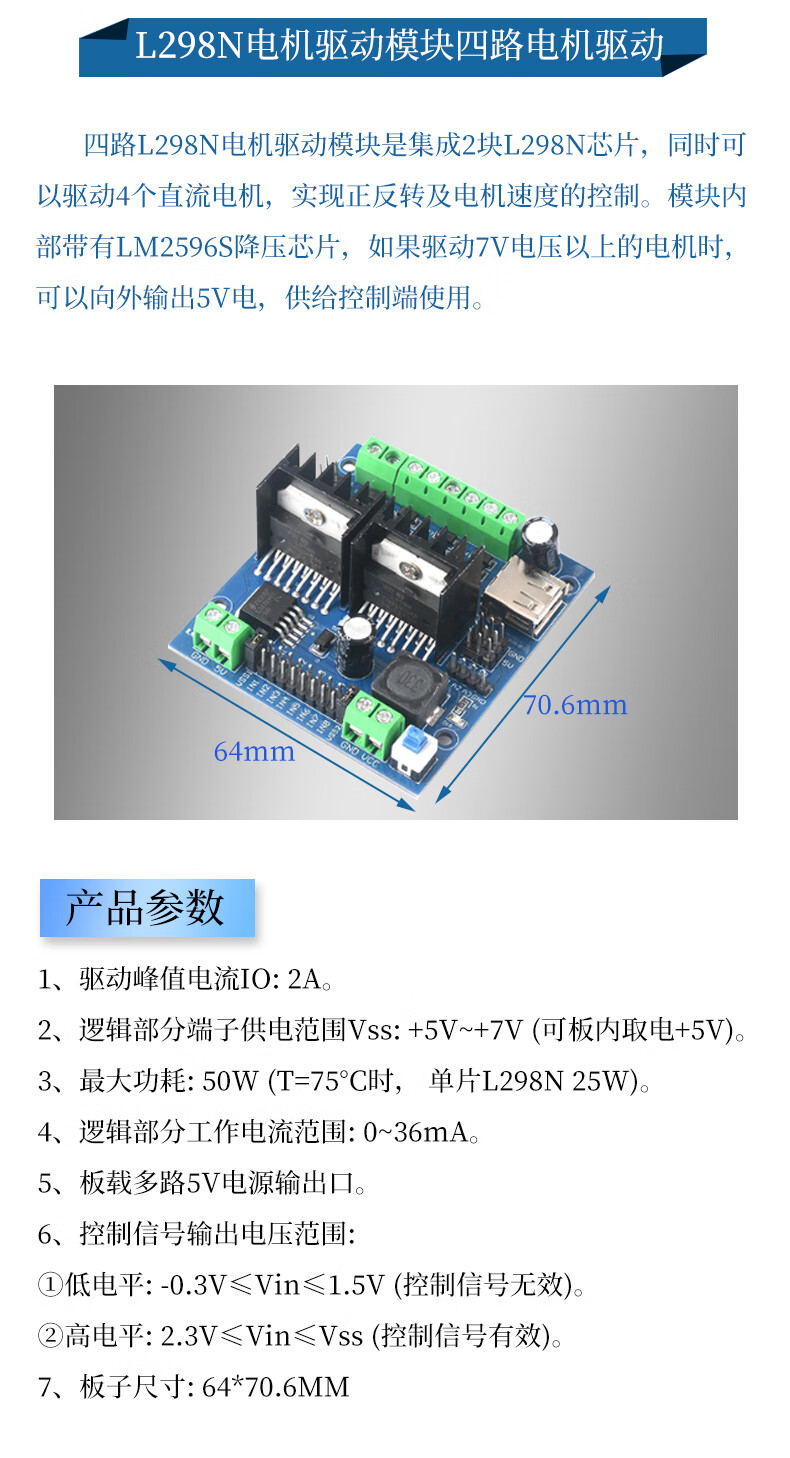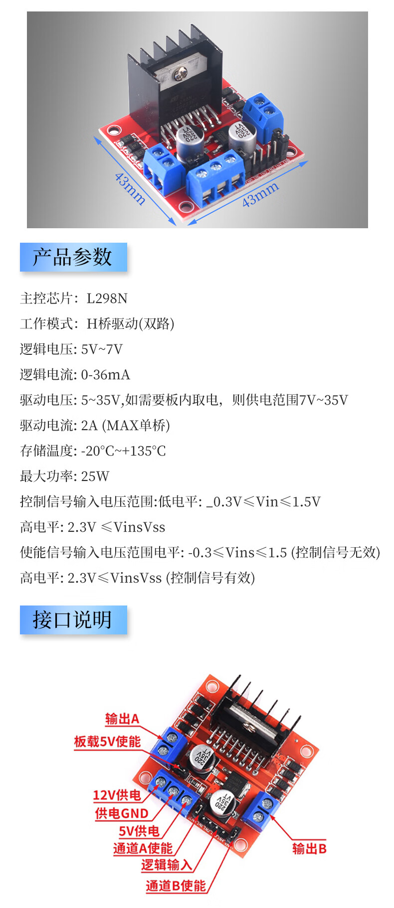L298N motor driver board module two/four DC stepper motor motor smart car robot accessories TB6612FNG DC motor driver board L298N dual H-bridge motor driver board module