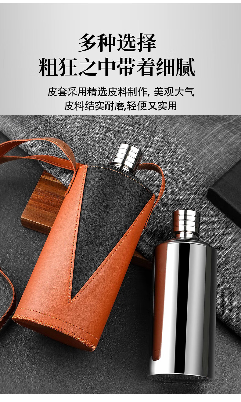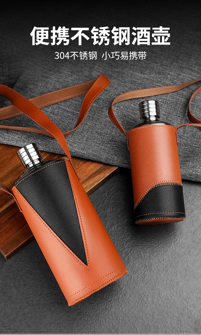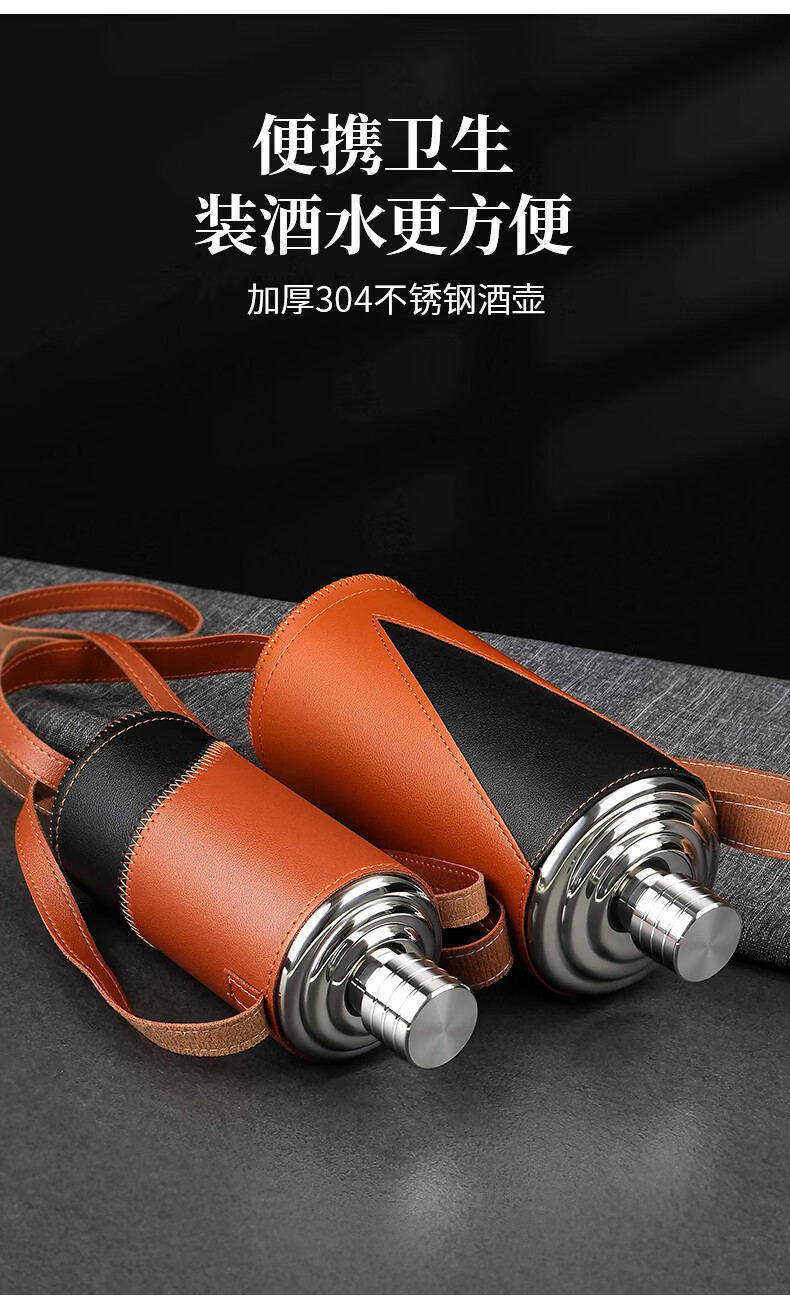 Huangxi portable wine bottle 304 stainless steel small wine bottle portable outdoor wine bottle 2 catties large capacity household liquor bottle 2 catties wine bottle (free strap) single bottle 1L
