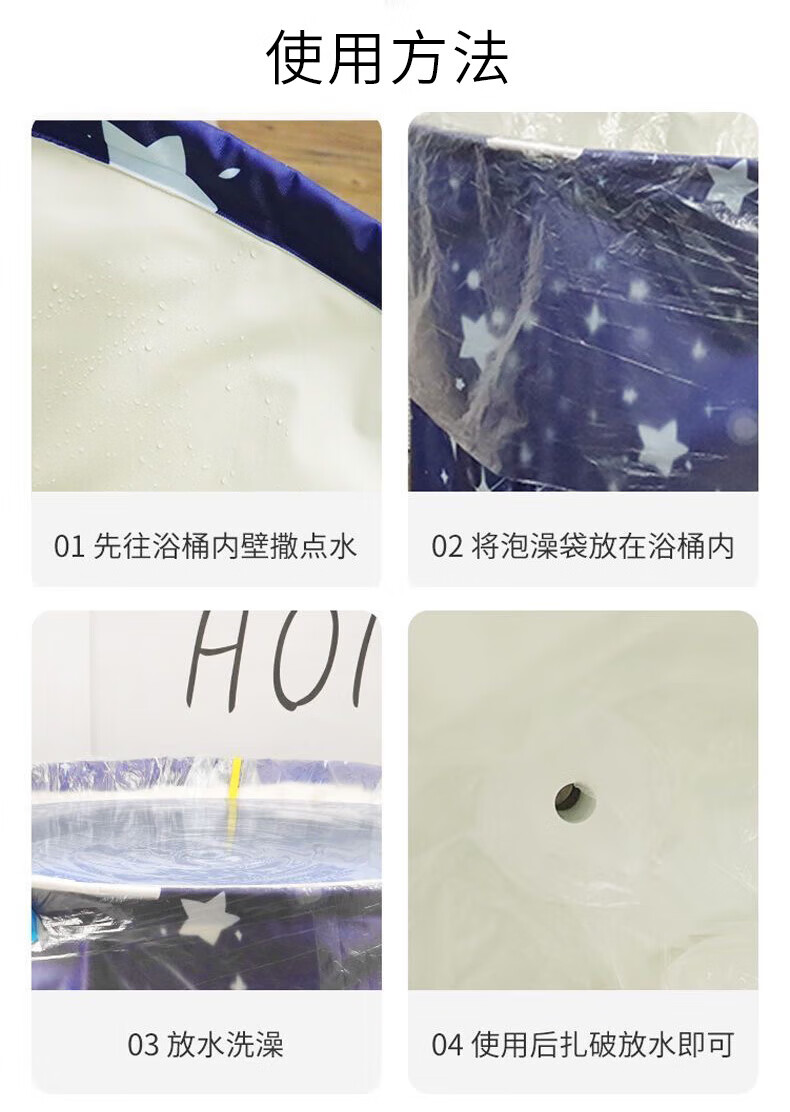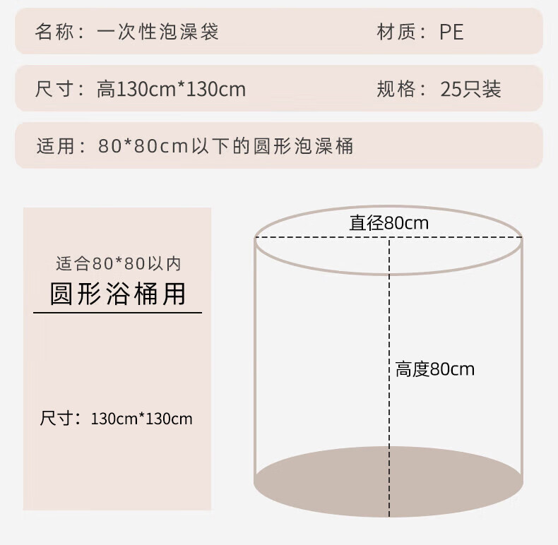 Wilkie disposable bath bag swimming plastic bag bath bucket bath bag baby bath bucket bathtub barrel thickened bath bag 25 disposable bath bags suitable for bath buckets with a diameter of 80cm and below