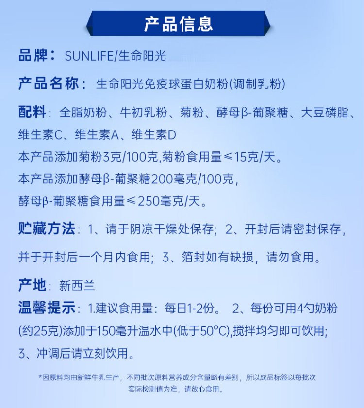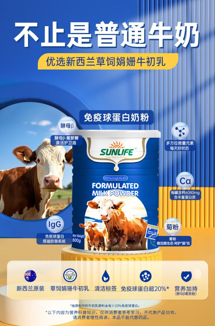 Life Sunshine Immune Globulin Milk Powder Colostrum Powder Children's Middle-aged and Elderly Sub-Health Chemotherapy Glucan Sports Nutrition New Zealand Original Imported Immune Globulin Milk Powder 800g*1 Can