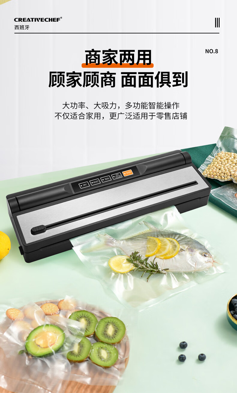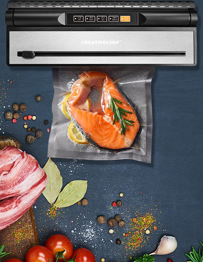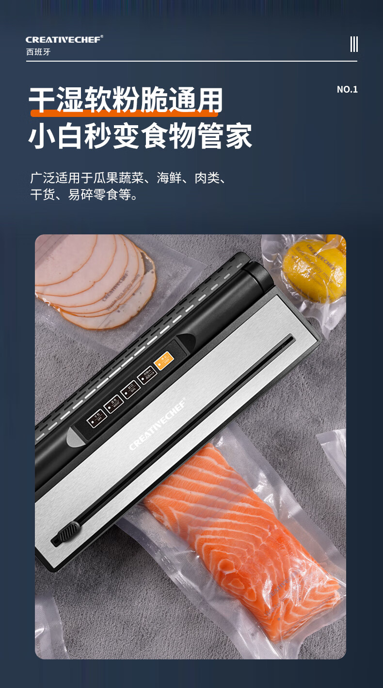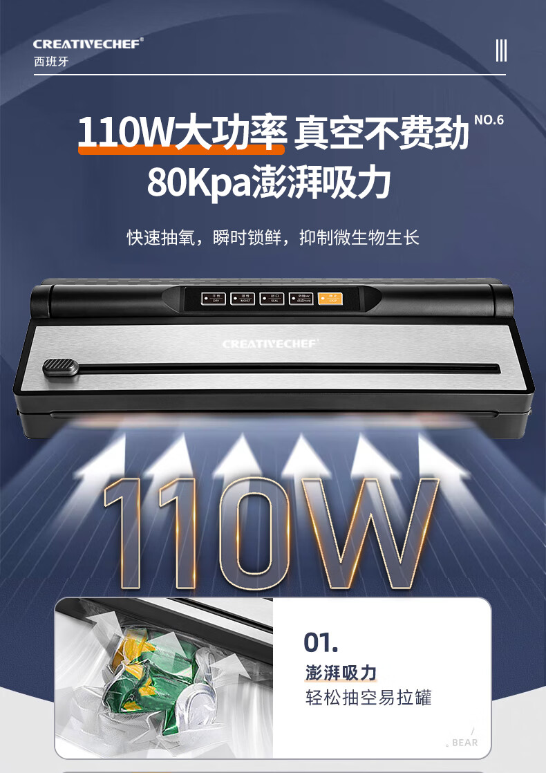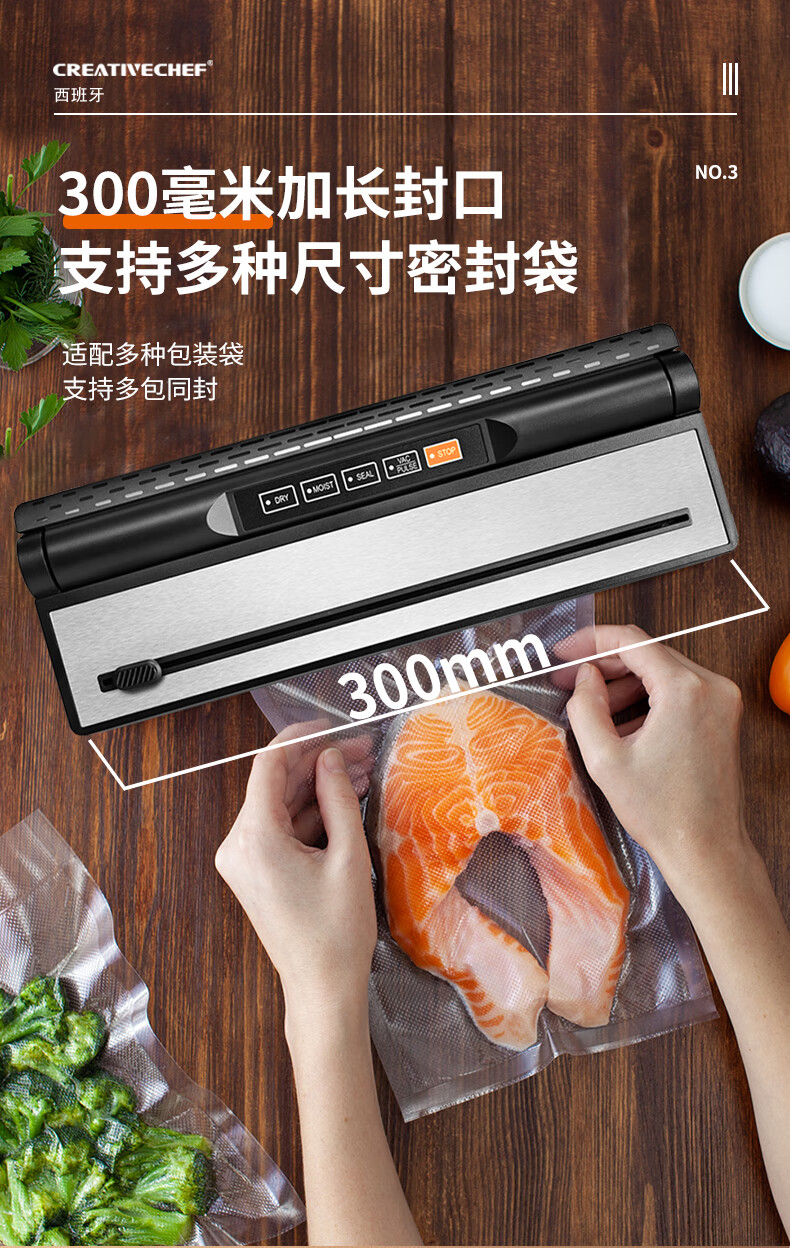 Creativechef vacuum sealing machine household small fully automatic vacuum packaging machine wet and dry fresh-keeping packaging and sealing machine commercial high-suction vacuum fresh-keeping packaging machine built-in cutter luxury super suction VP68 vacuum machine 30cm