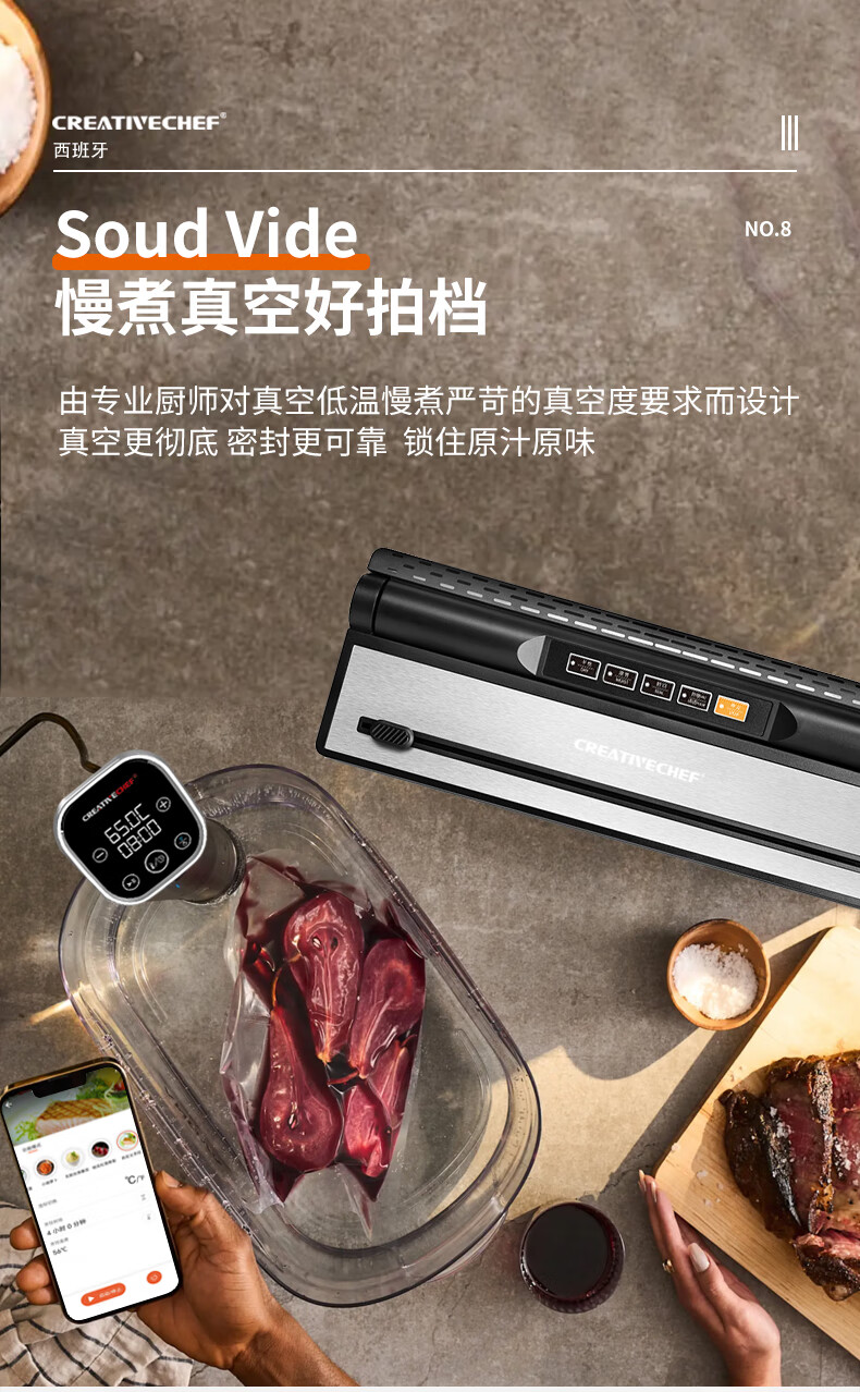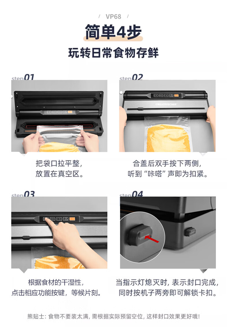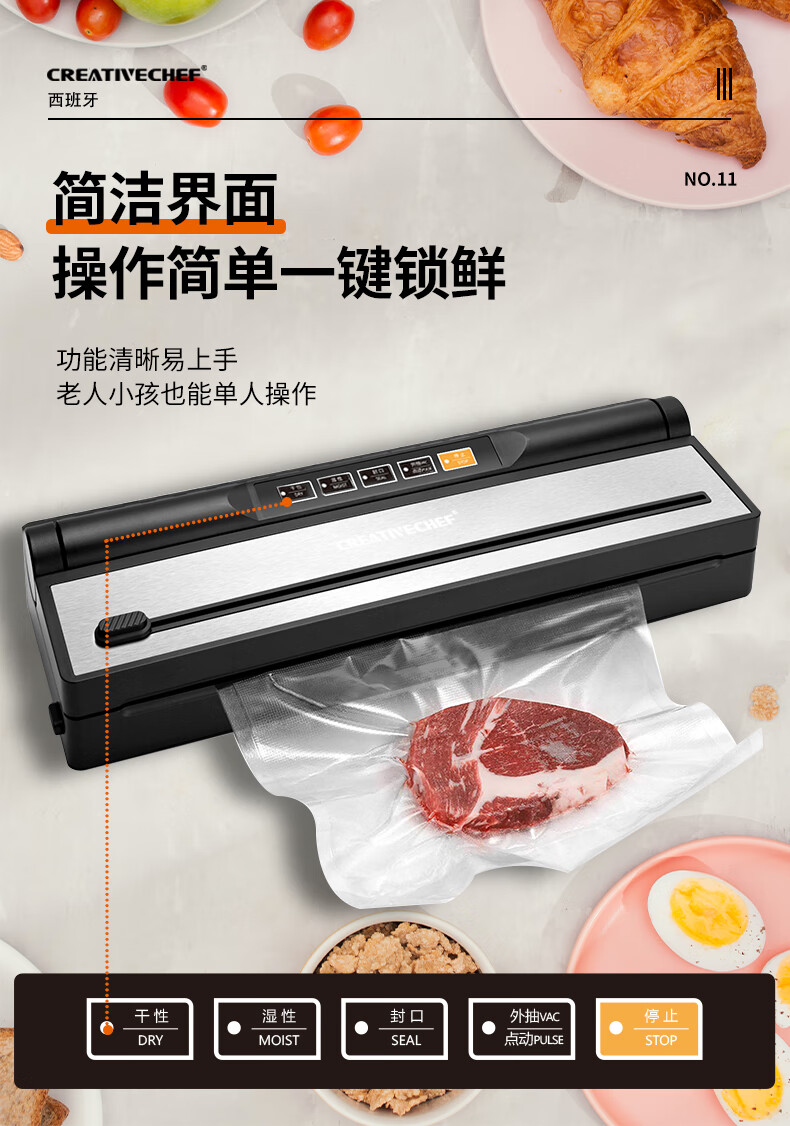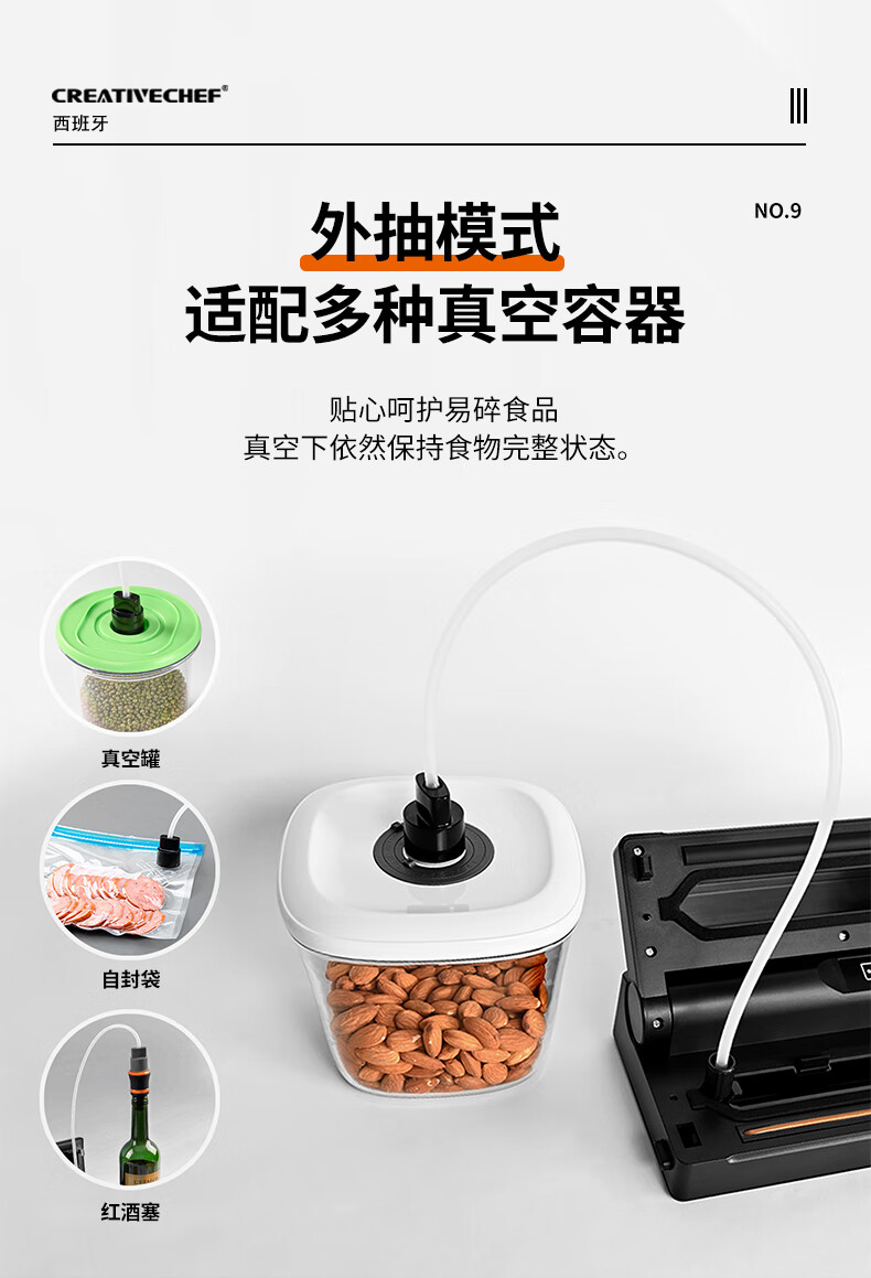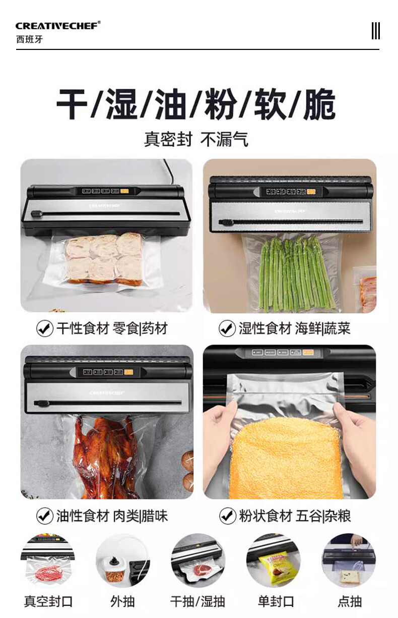 Creativechef vacuum sealing machine household small fully automatic vacuum packaging machine wet and dry fresh-keeping packaging and sealing machine commercial high-suction vacuum fresh-keeping packaging machine built-in cutter luxury super suction VP68 vacuum machine 30cm