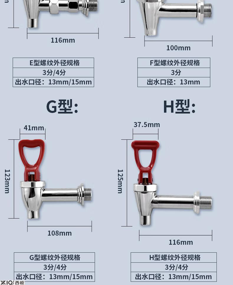 Xiqi hot water boiler faucet, all copper double teeth, bucket water boiler switch accessories, 3 points, 3.5 points, 4 points, red handle H-shaped luxury extended straight handle 4 points