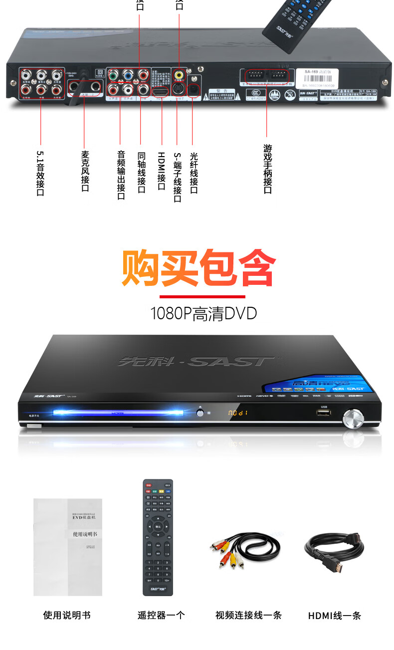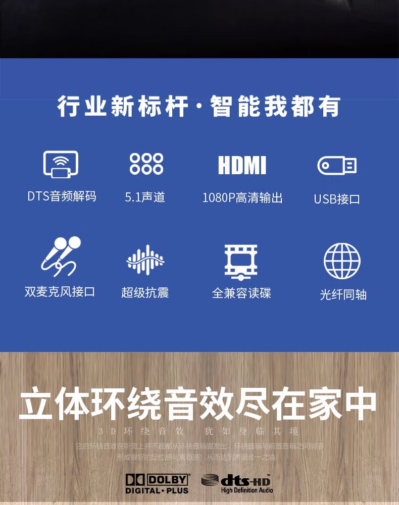 Xianke DVD player home dts decoding Dolby 5.1 high-definition VCD player cd full format DVD player high-definition player 2025 new style free music disc
