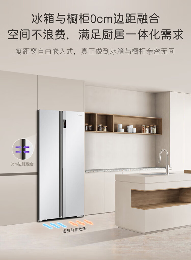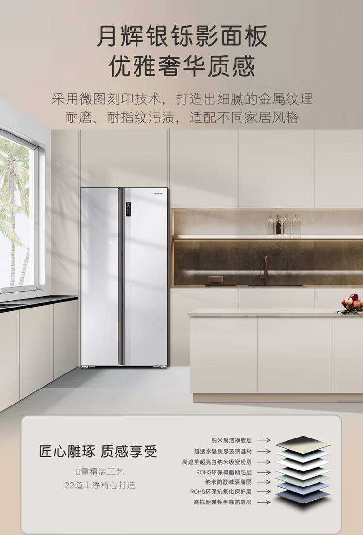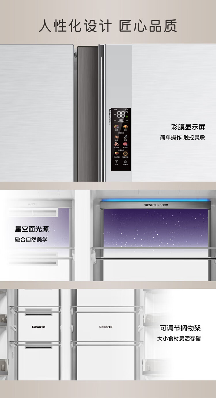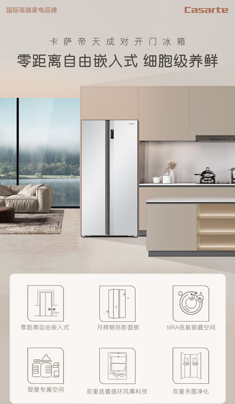 Casarte (Casarte) National Subsidy 20% Refrigerator 640L Large Capacity Side-by-side Door Zero Embedded Double Door Dual System Level 1 Energy Efficiency Yuehui Silver 640L Side-by-side Door