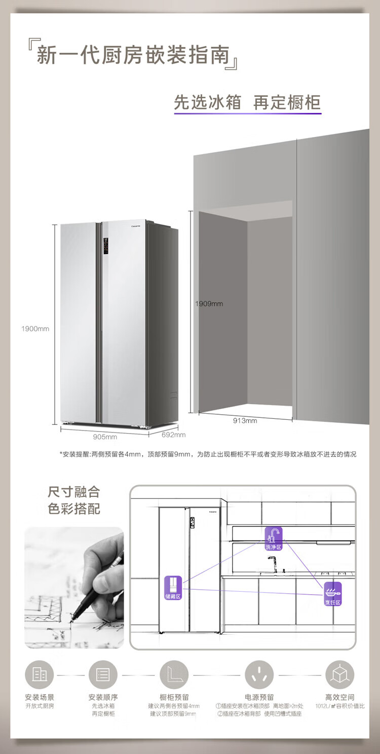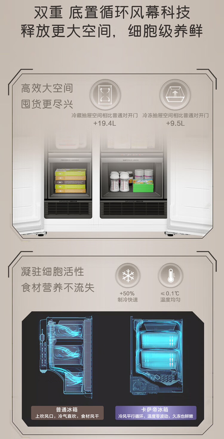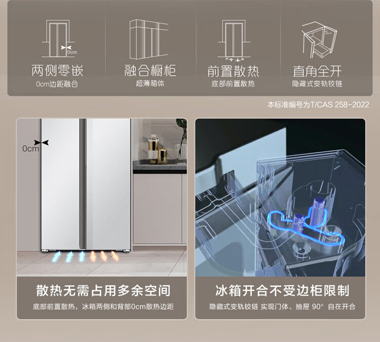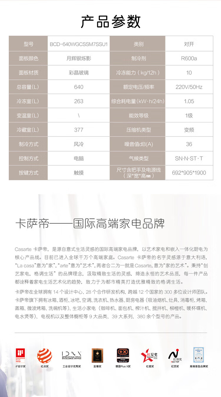 Casarte (Casarte) National Subsidy 20% Refrigerator 640L Large Capacity Side-by-side Door Zero Embedded Double Door Dual System Level 1 Energy Efficiency Yuehui Silver 640L Side-by-side Door