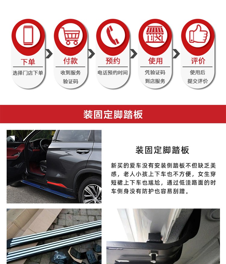 Youjia goes to maintenance and installation of fixed side step services. Installation of electric side steps. Only construction fee. Installation of electric side steps for all models.