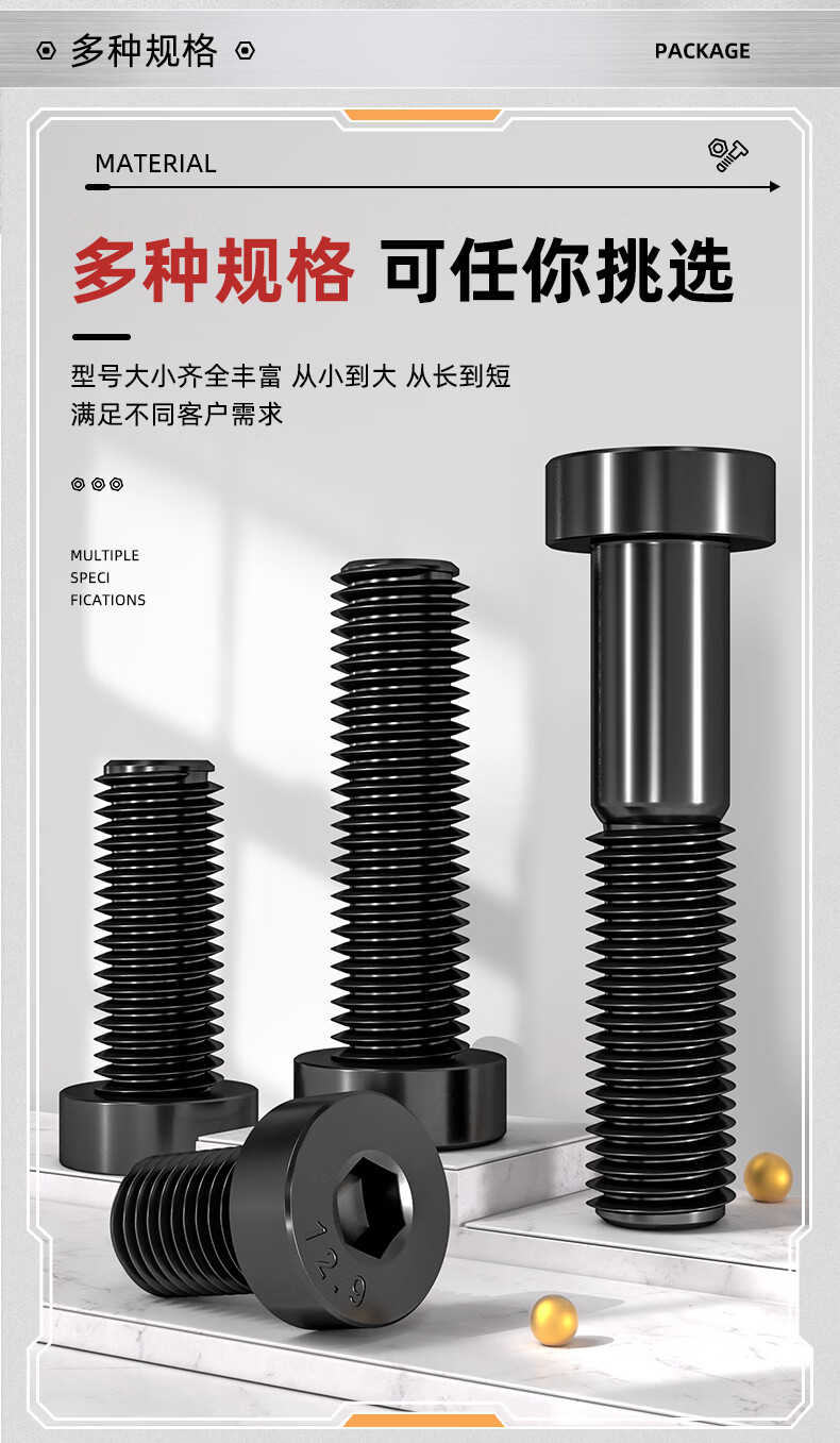 Fengji Grade 12.9 High Strength Thin Head Hexagon Screws Short Head Hexagon Bolts M4M5M6M8M10M12M14M16 M6*10 20 pcs Black