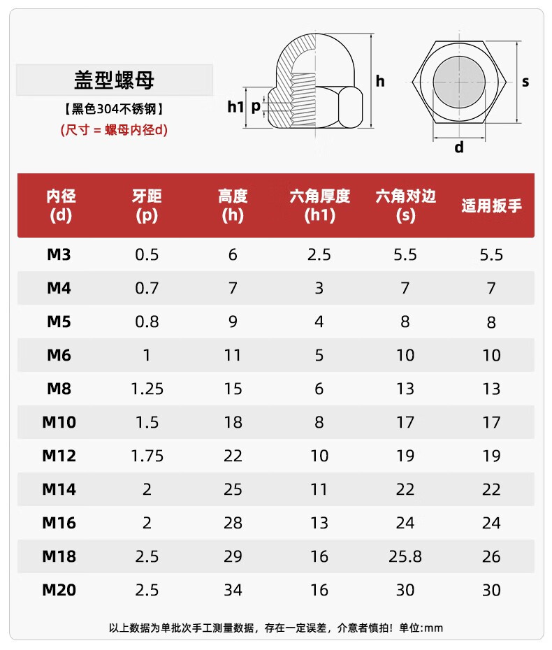 Fengji black 304 stainless steel cap nut cap decorative cap round ball head screw cap cap nut MM3M4-M20 black 304 M8-5 only