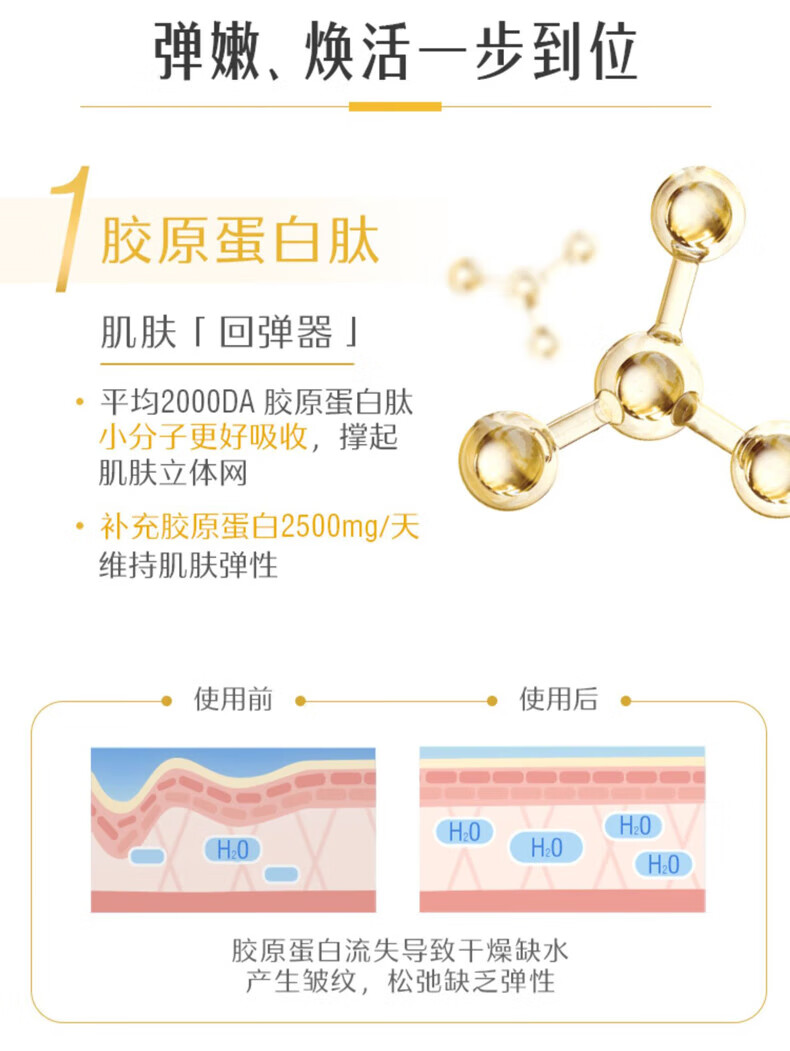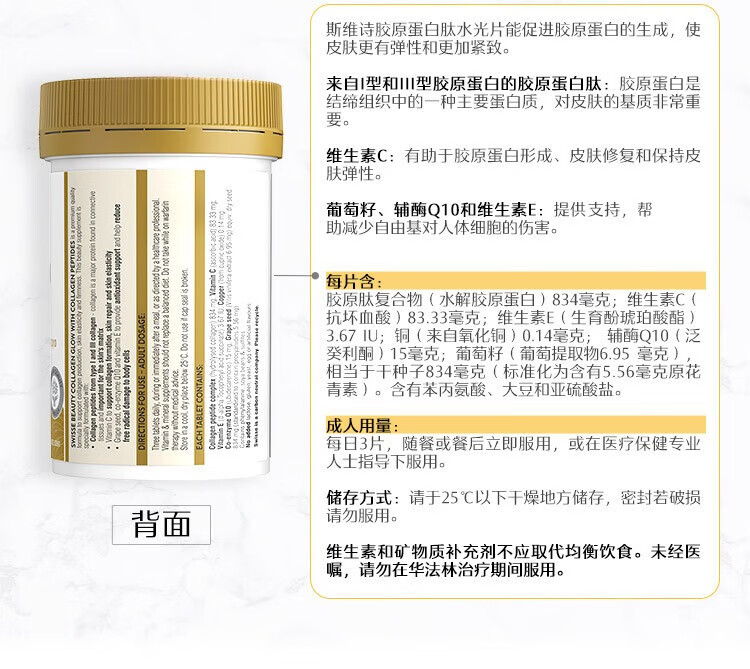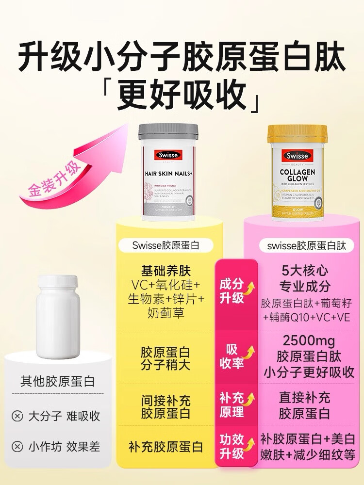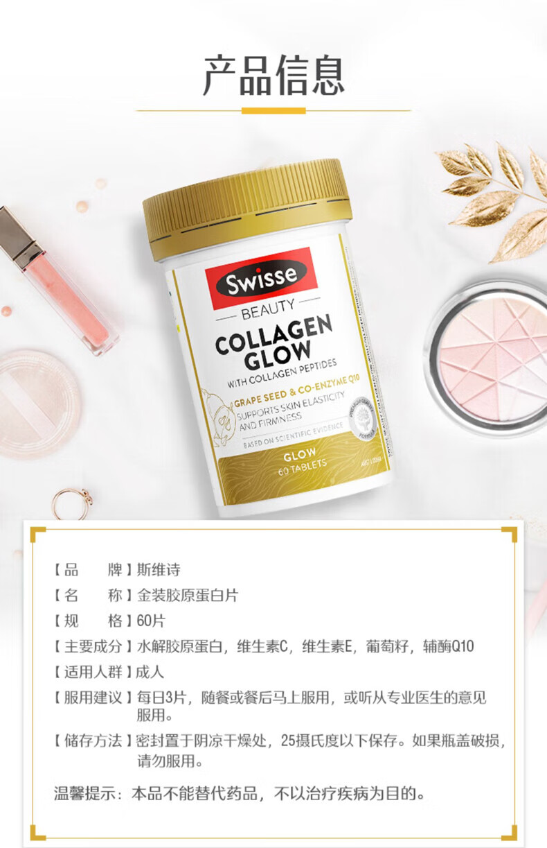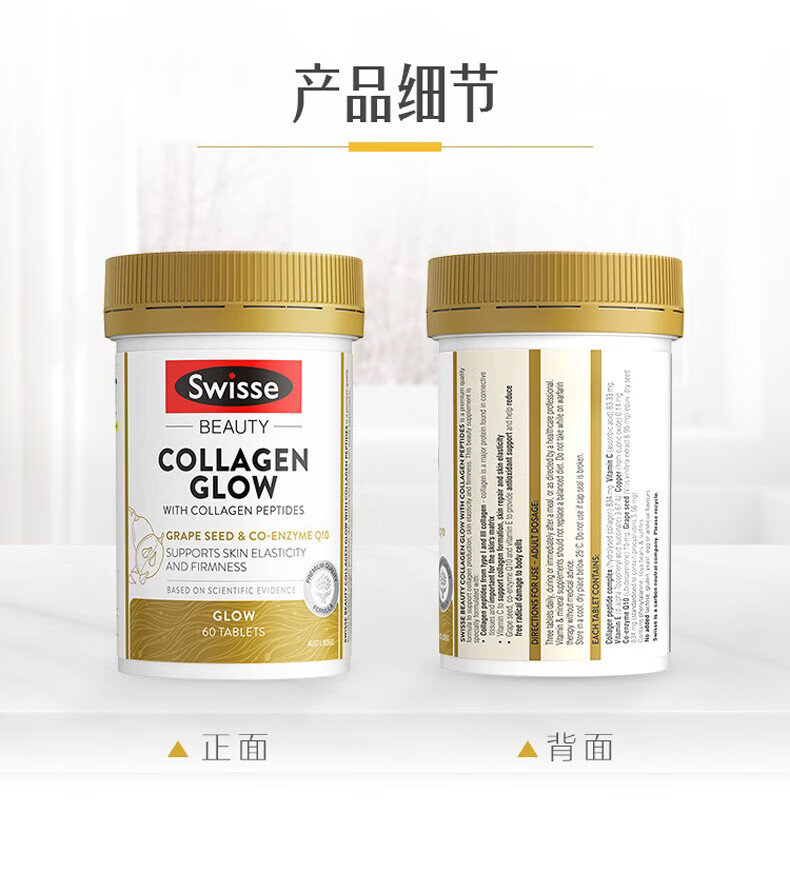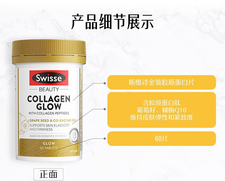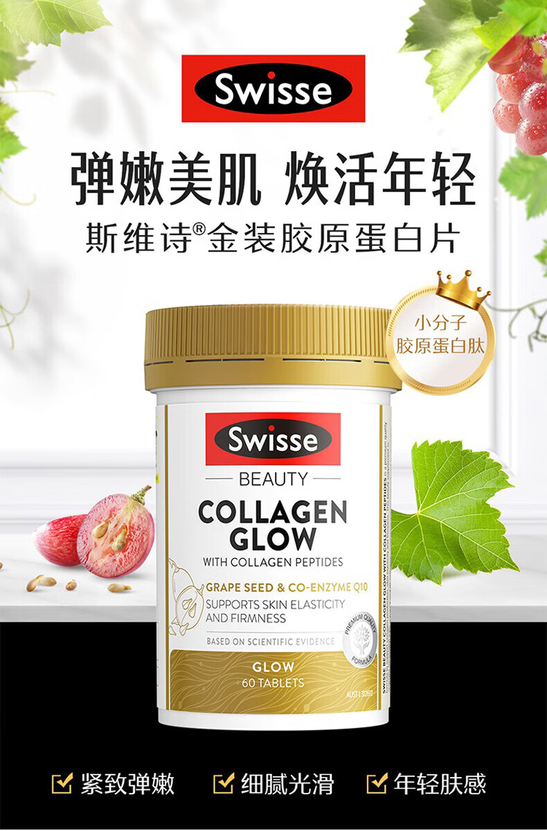 Swisse Collagen Peptide Anti-Aging Hydrating Small Molecule Peptide is easy to absorb and take orally for skin to be supple and supple. Validity period is 27-01. Three bottles per cycle. Q-Elastic Hydrating Collagen Peptide 60 capsules*3 bottles.