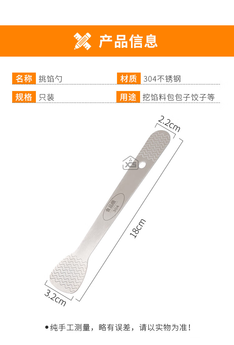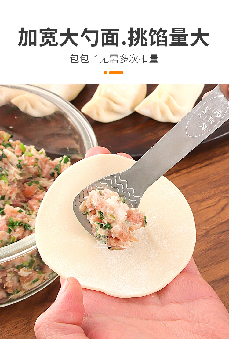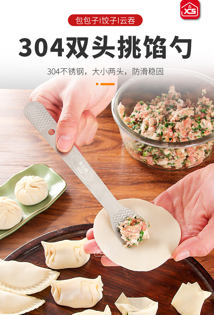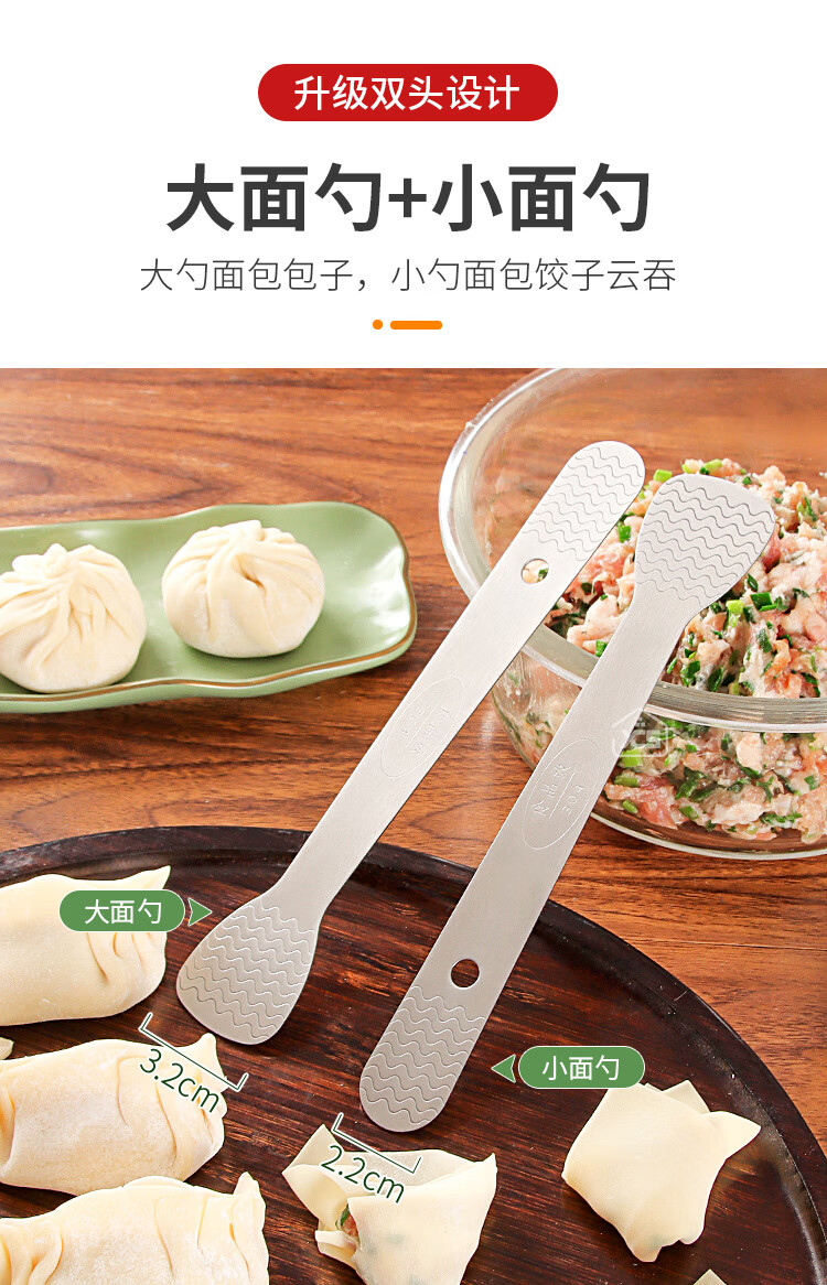 Necooks double-head dumpling filling spoon food-grade flat ruler 304 stainless steel filling spoon buns wonton dumpling filling ruler 1 double-headed dual-purpose, 304 stainless steel