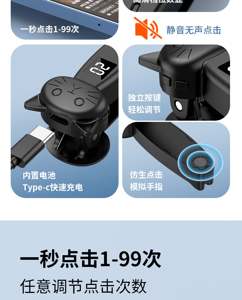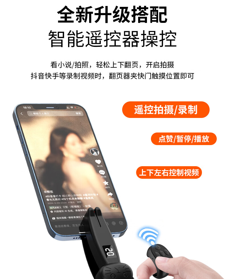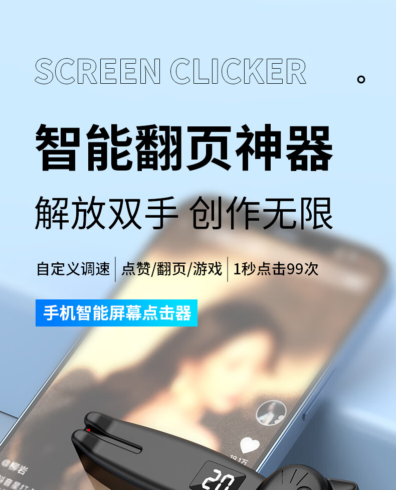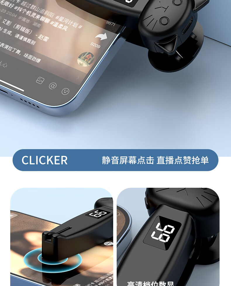 FUNRE smart screen clicker, automatic screen clicker, fully automatic physical clicker, grabbing orders, likes, turning pages, taking photos, mobile phones and tablets, Kindle universal click red heart live streaming snap-up artifact, black screen remote clicker, mobile phone/tablet/Kindle universal
