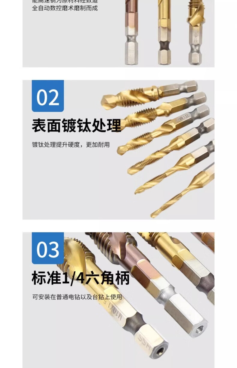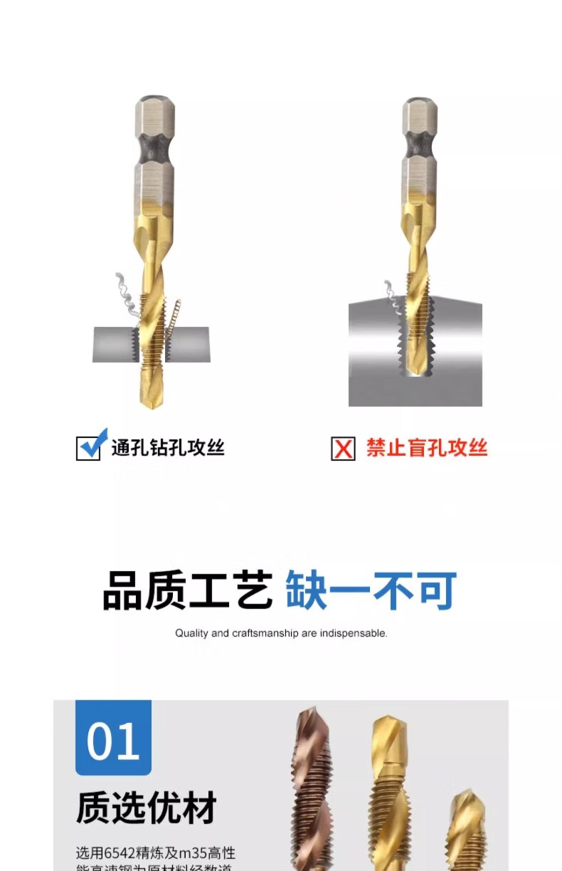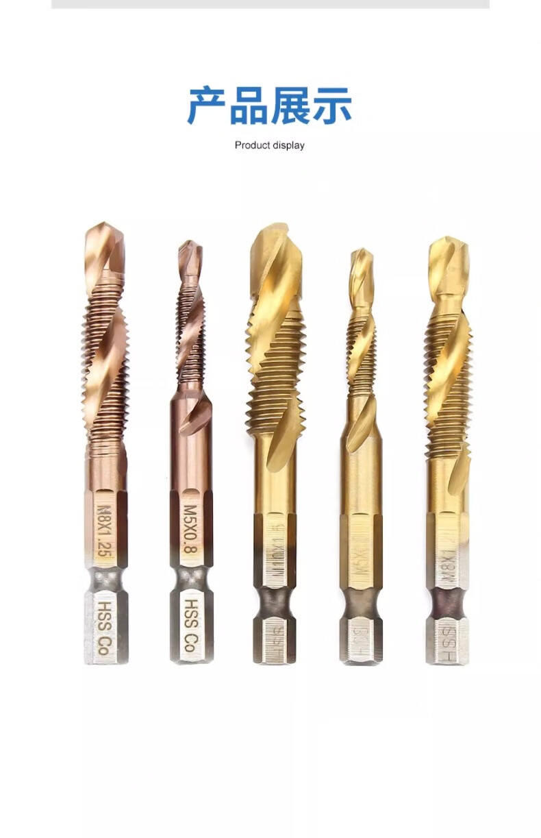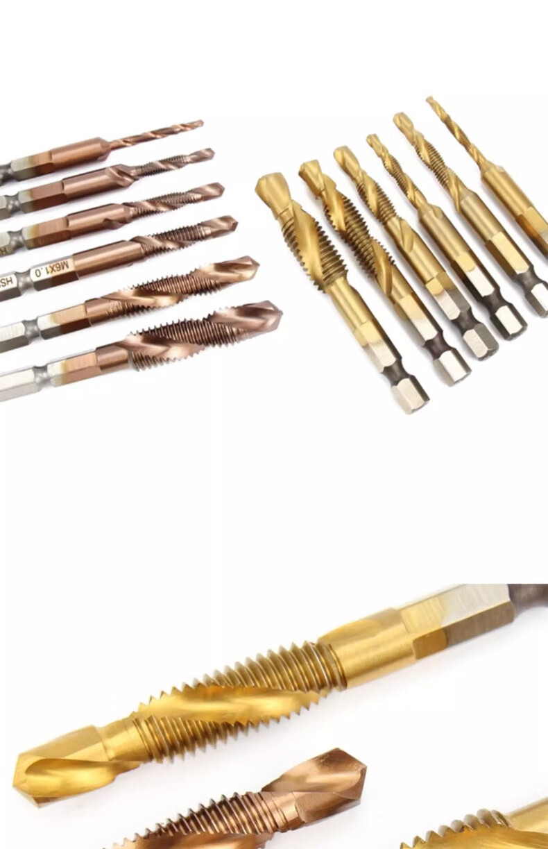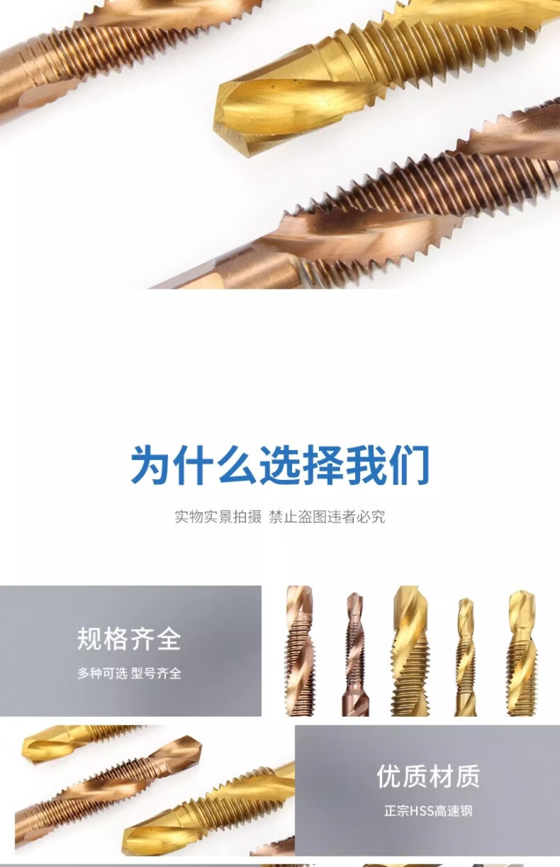 Jinchao Drilling and Tapping Integrated Tap Electric Drilling and Tapping Drill Bit Composite Drilling and Tapping Thread Tapping Set 4341 Titanium Plated 6-piece Set