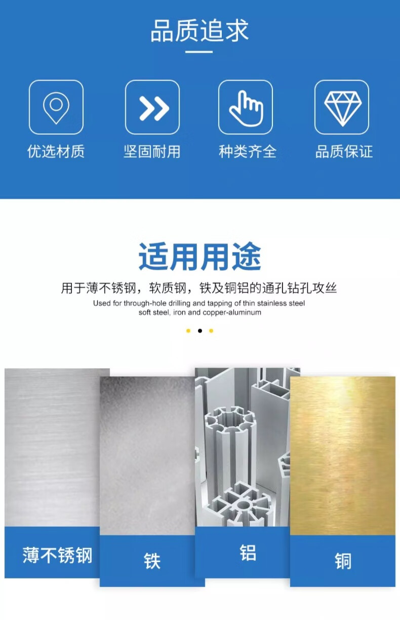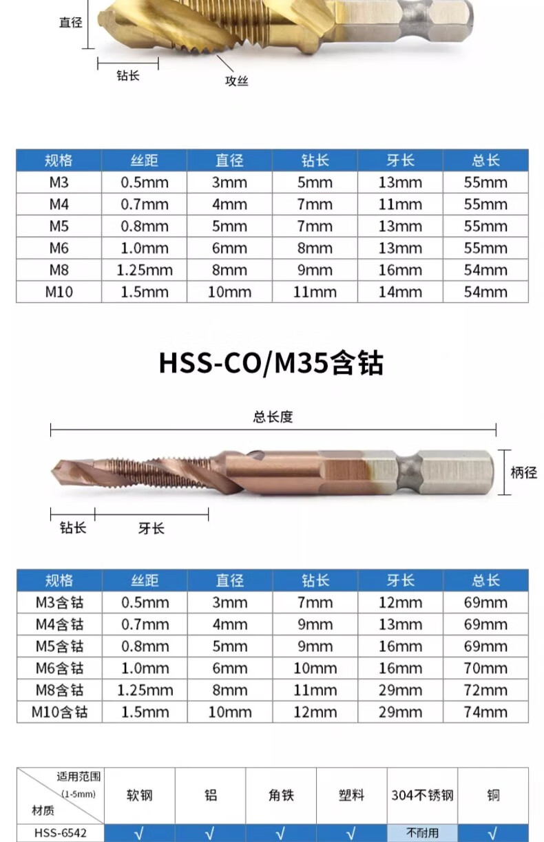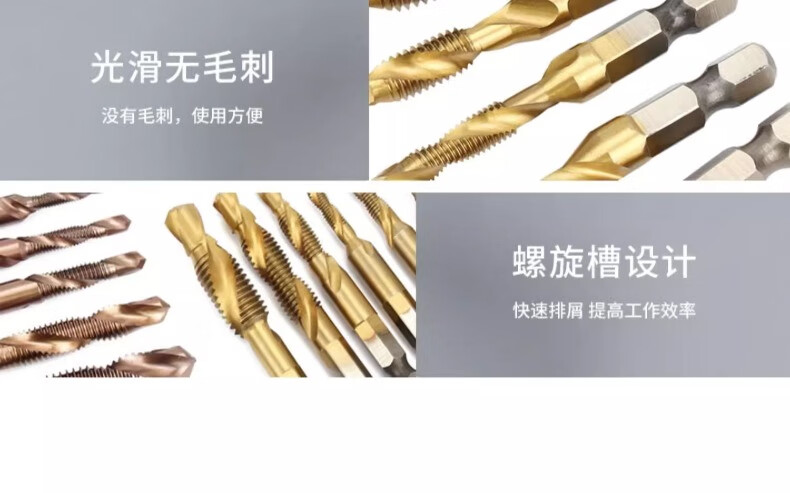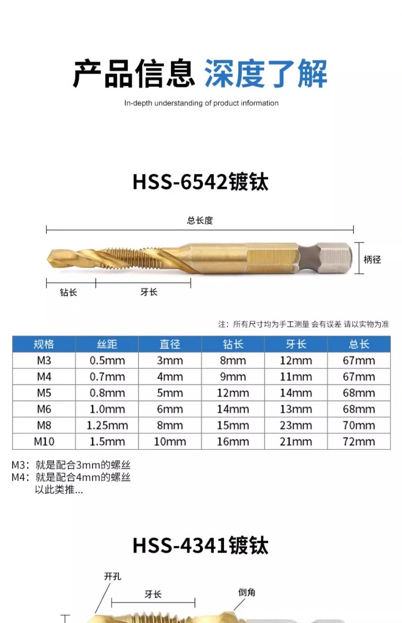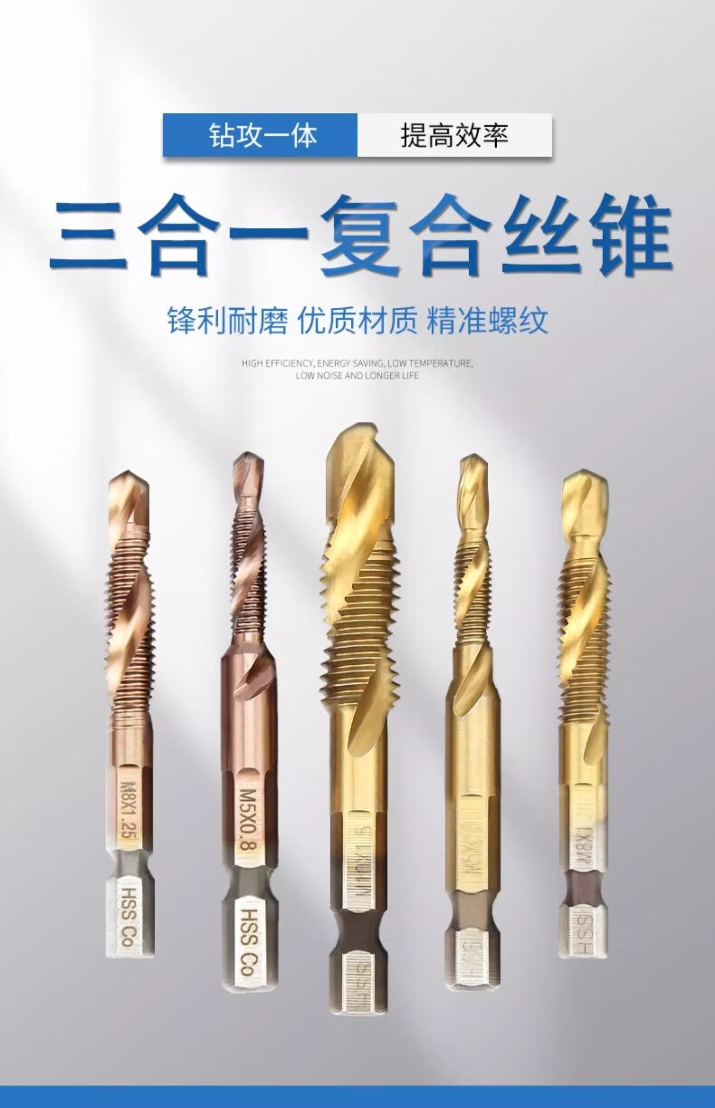 Jinchao Drilling and Tapping Integrated Tap Electric Drilling and Tapping Drill Bit Composite Drilling and Tapping Thread Tapping Set 4341 Titanium Plated 6-piece Set