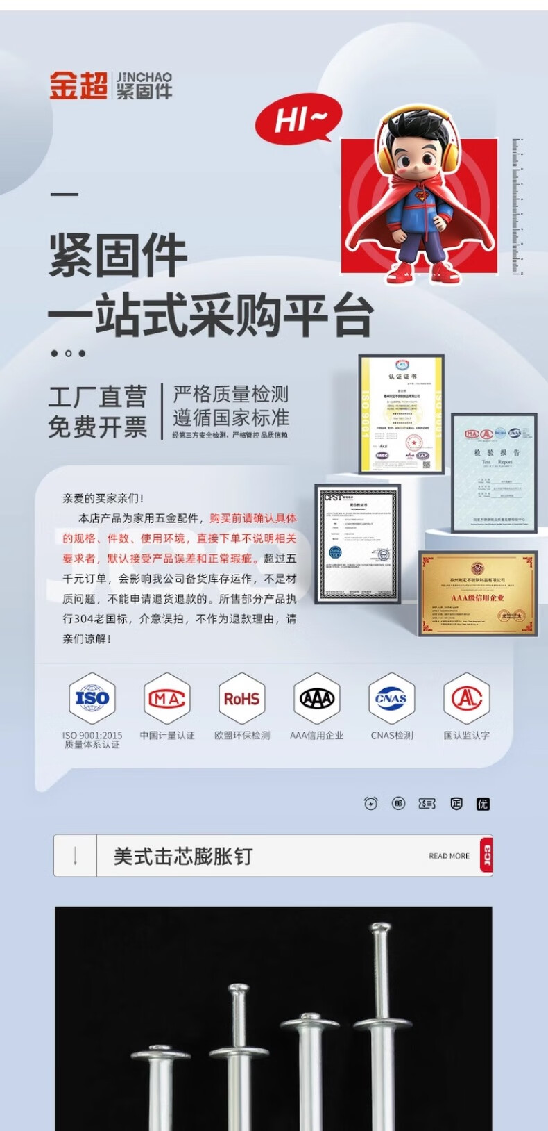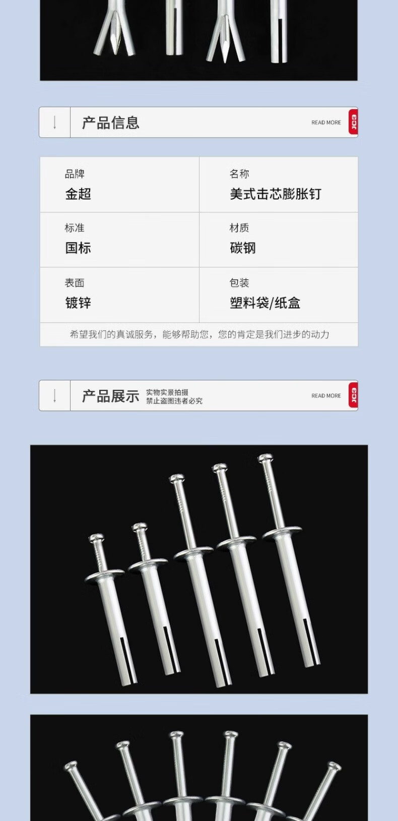 Jinchao expansion screw American large-head explosive bolt driven into percussion fast nail pull-out fixed internal expansion nail 6*40mm (200 pieces) + drill bit