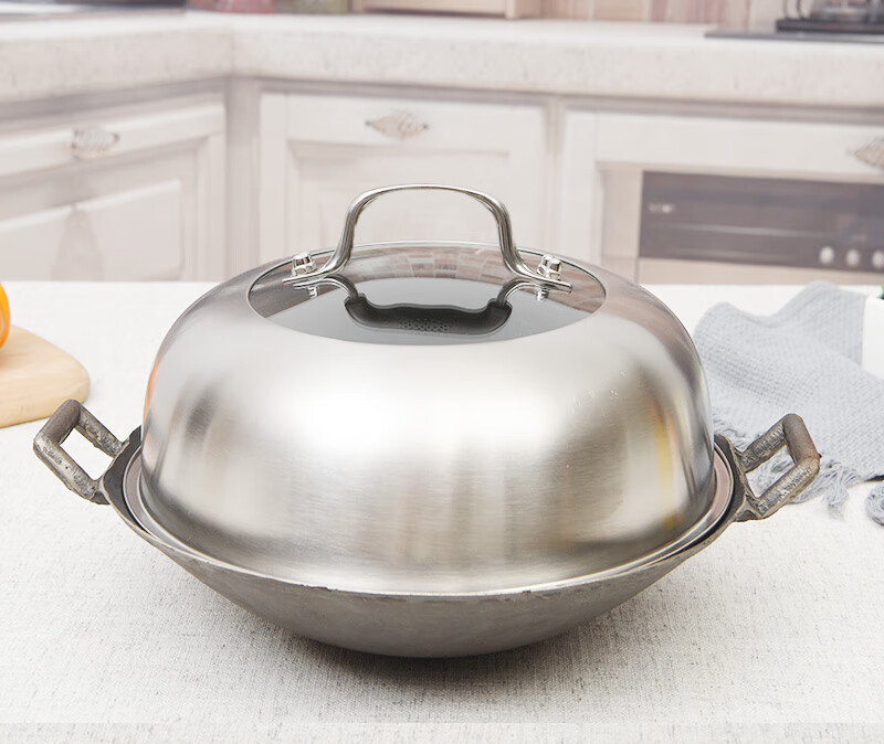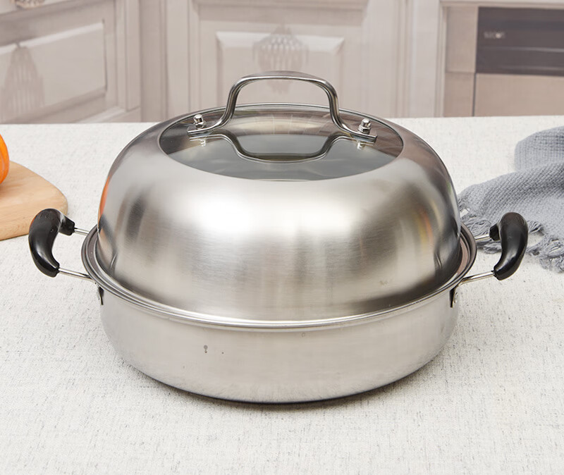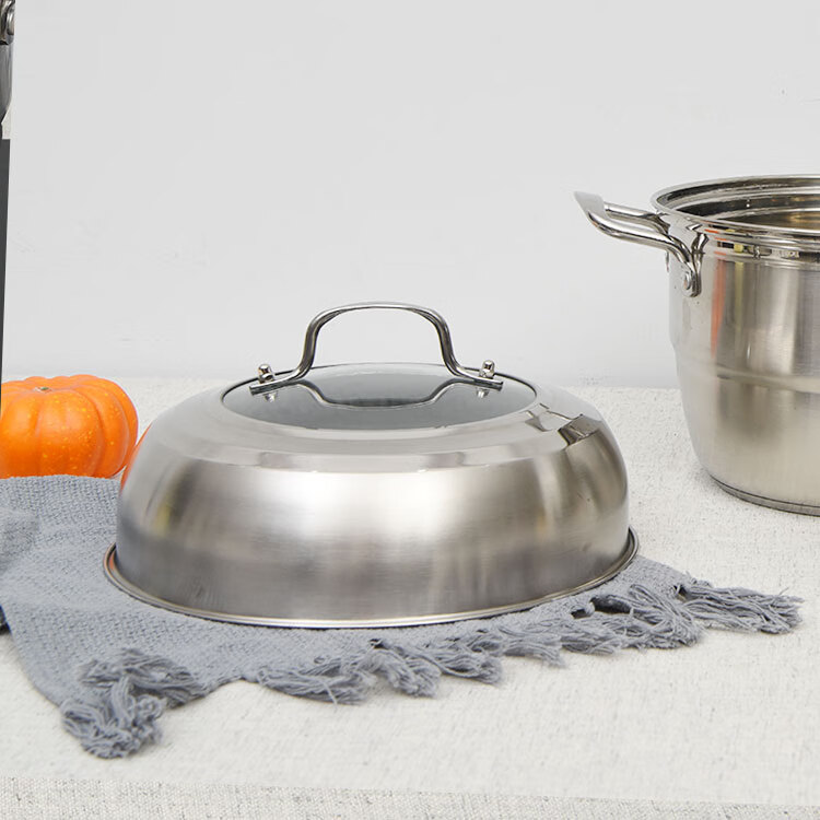 Chinuo stainless steel pot lid, household steamer lid, high lid, thickened wok lid, elevated arched stir-frying tripod lid, 24.6cm steamer lid (stainless steel handle), brown glass