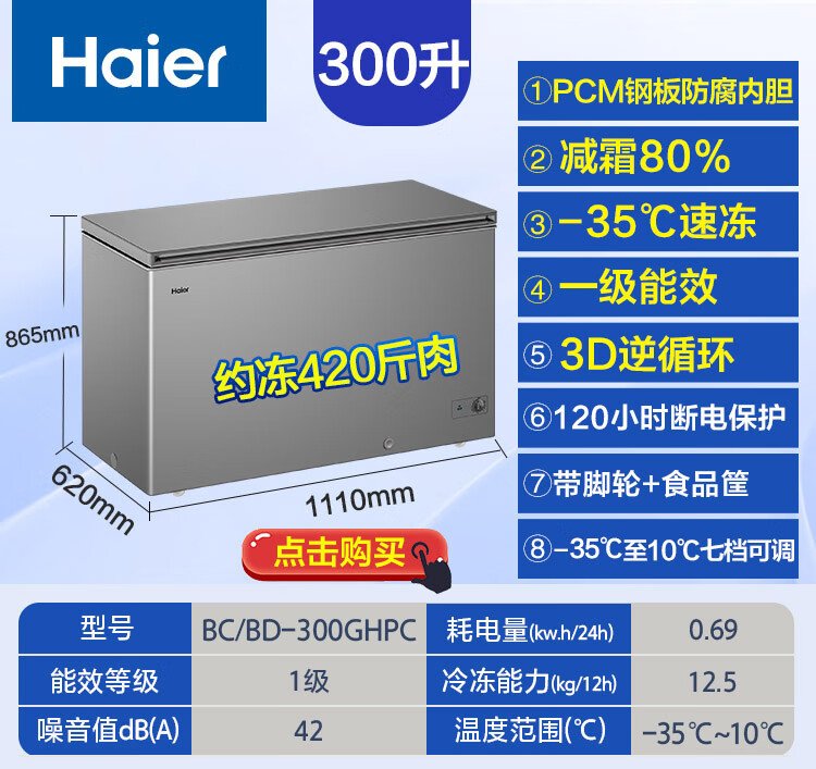 Haier Freezer Commercial Household Large Capacity Frost Reducing Energy Saving Level 1 Energy Efficiency Deep Freezing Quick Freezing Ultra Low Temperature Full Freezing Refrigeration Dual-Purpose Conversion Freezer 300/400/500 Liters and above Same Style in Physical Stores 429L丨First Level Energy Saving丨Frost Reducing Exemption丨-38