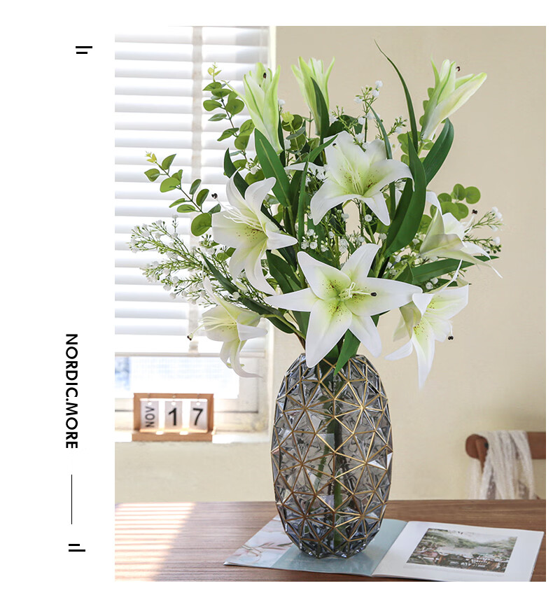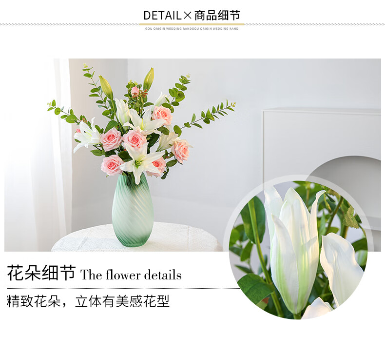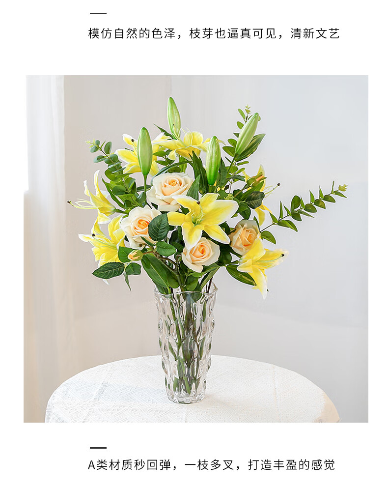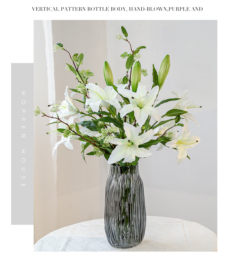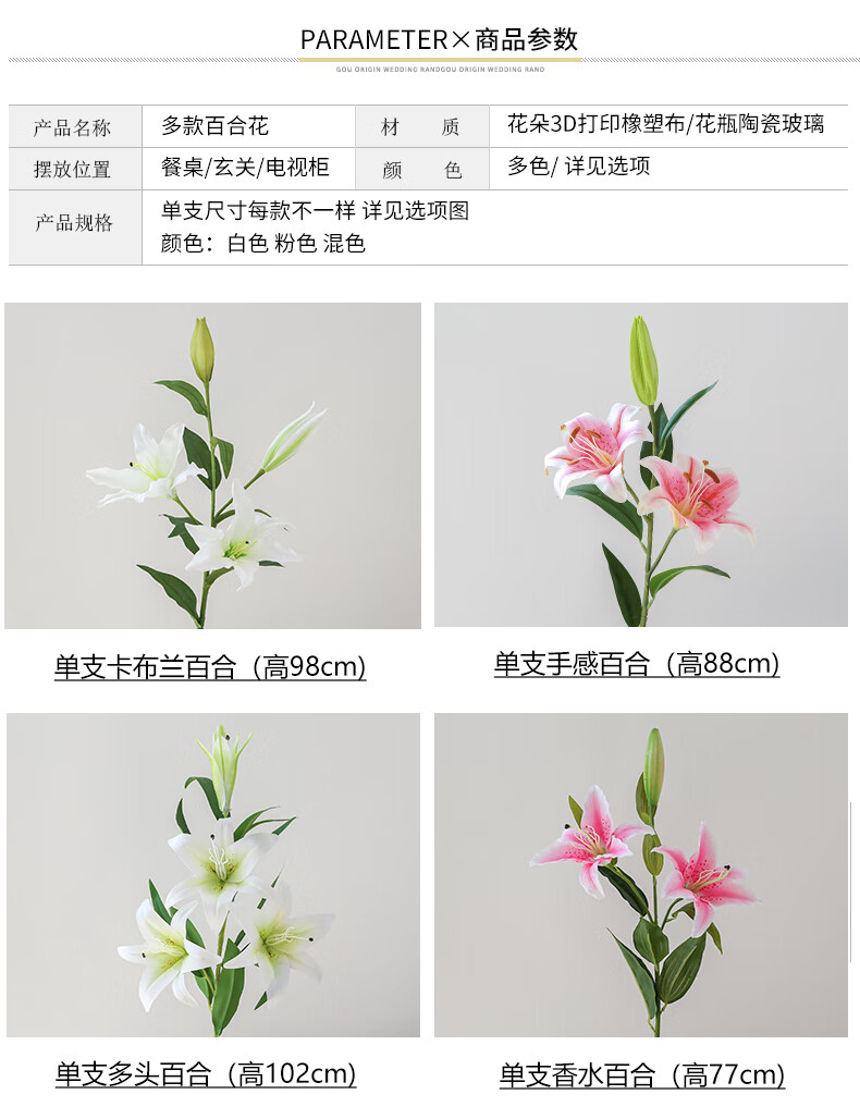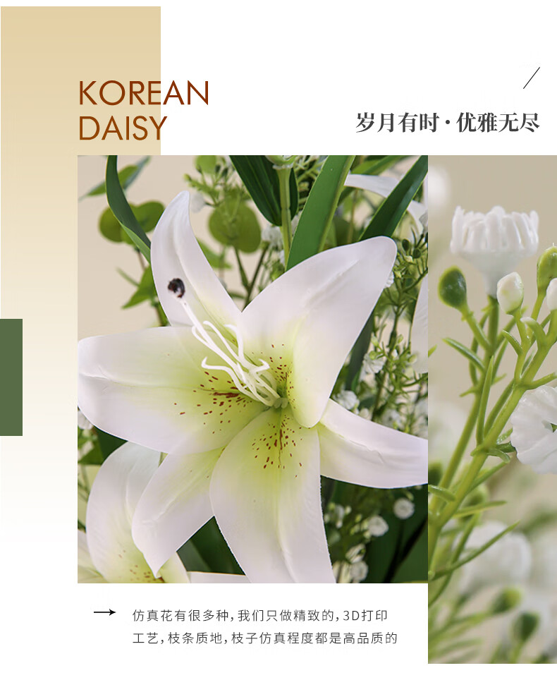 Fascinating makeup artificial flower high-branch lily flower simulated bouquet single living room TV cabinet dining table decoration simulated flower set flower 3 white 3 pink perfume lily + 2 leaves 2 baby's breath (not including vase)