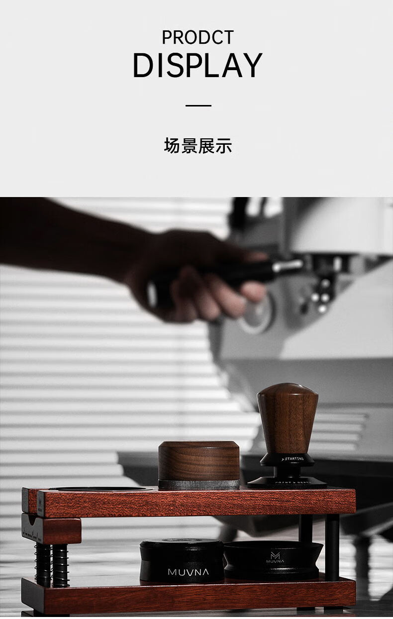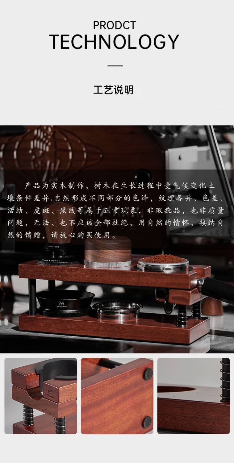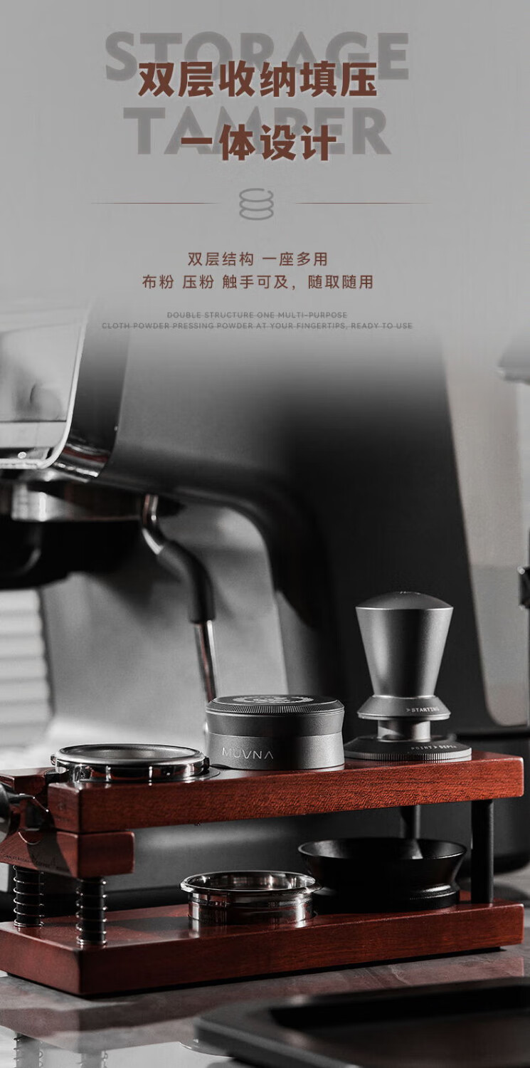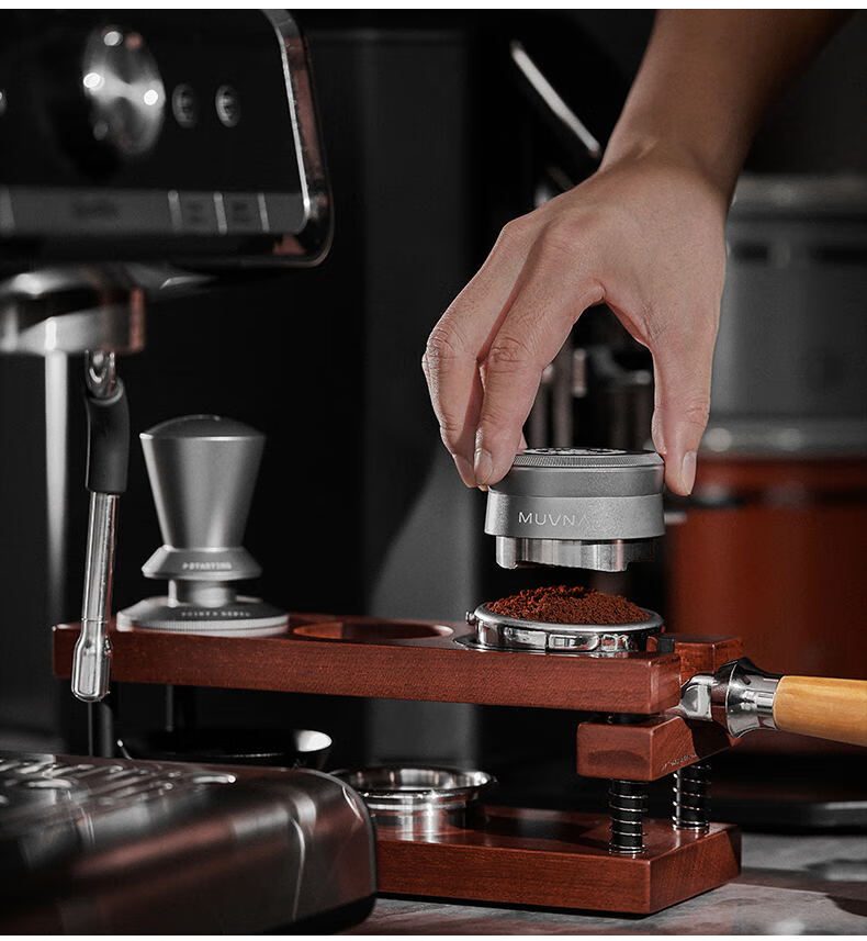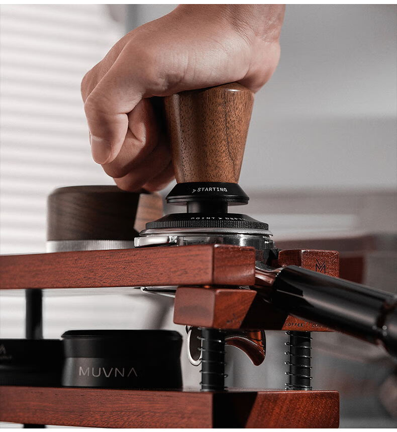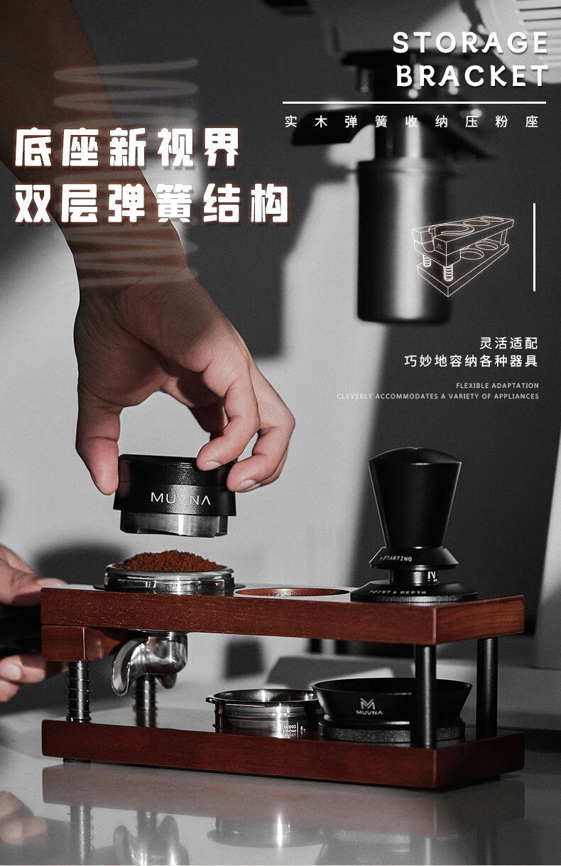 MUVNA coffee solid wood press powder seat handle storage bracket powder distributor powder press base 51/53/58mm solid wood spring press powder seat 51-54-58 universal