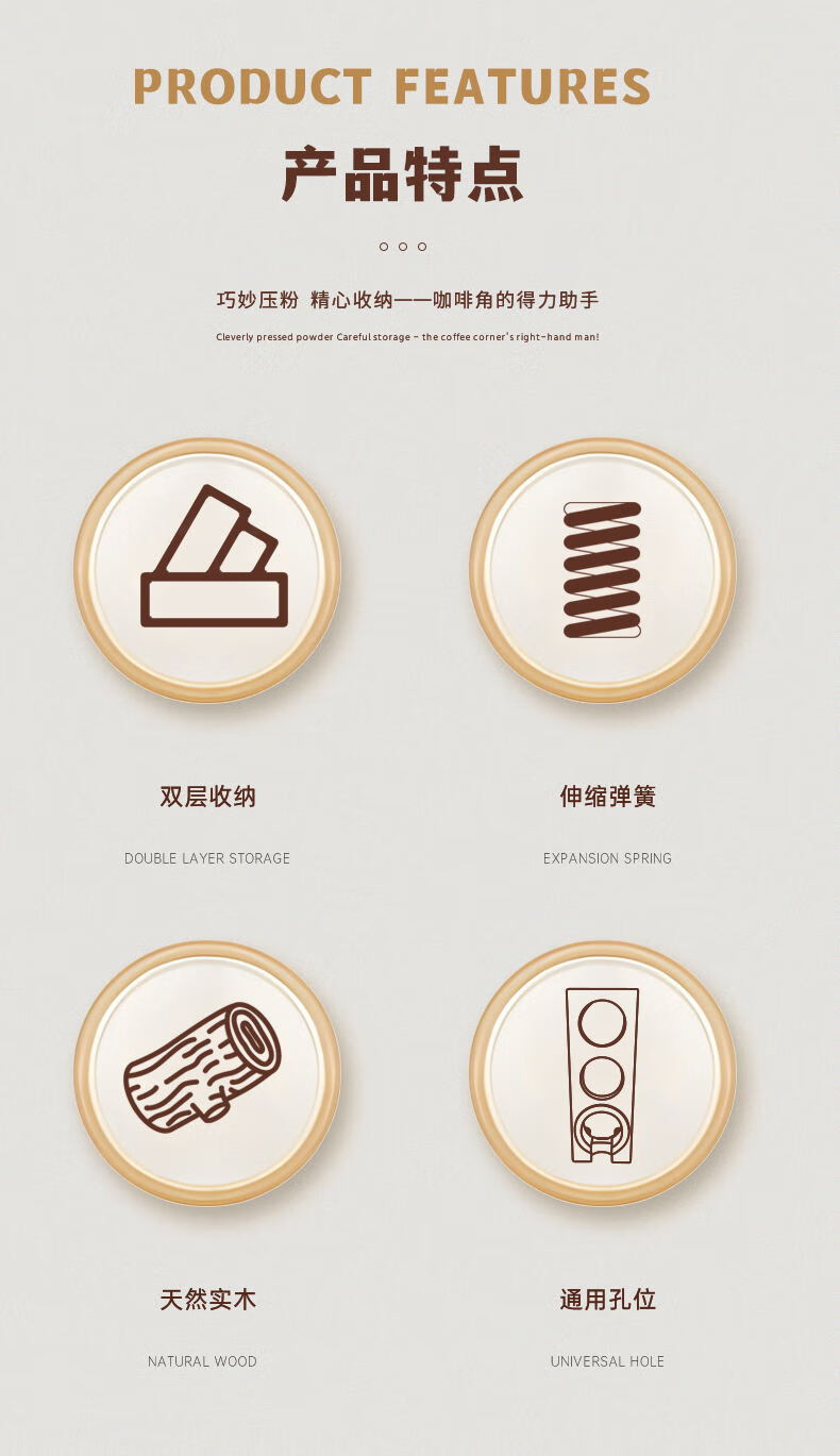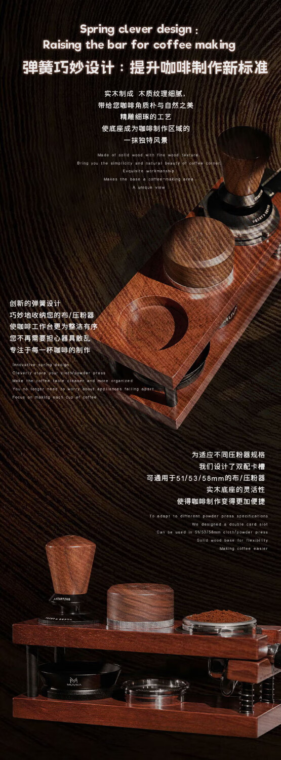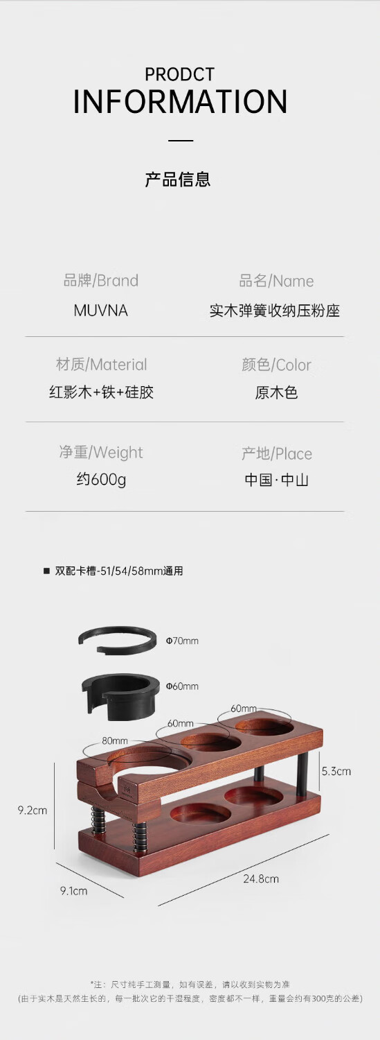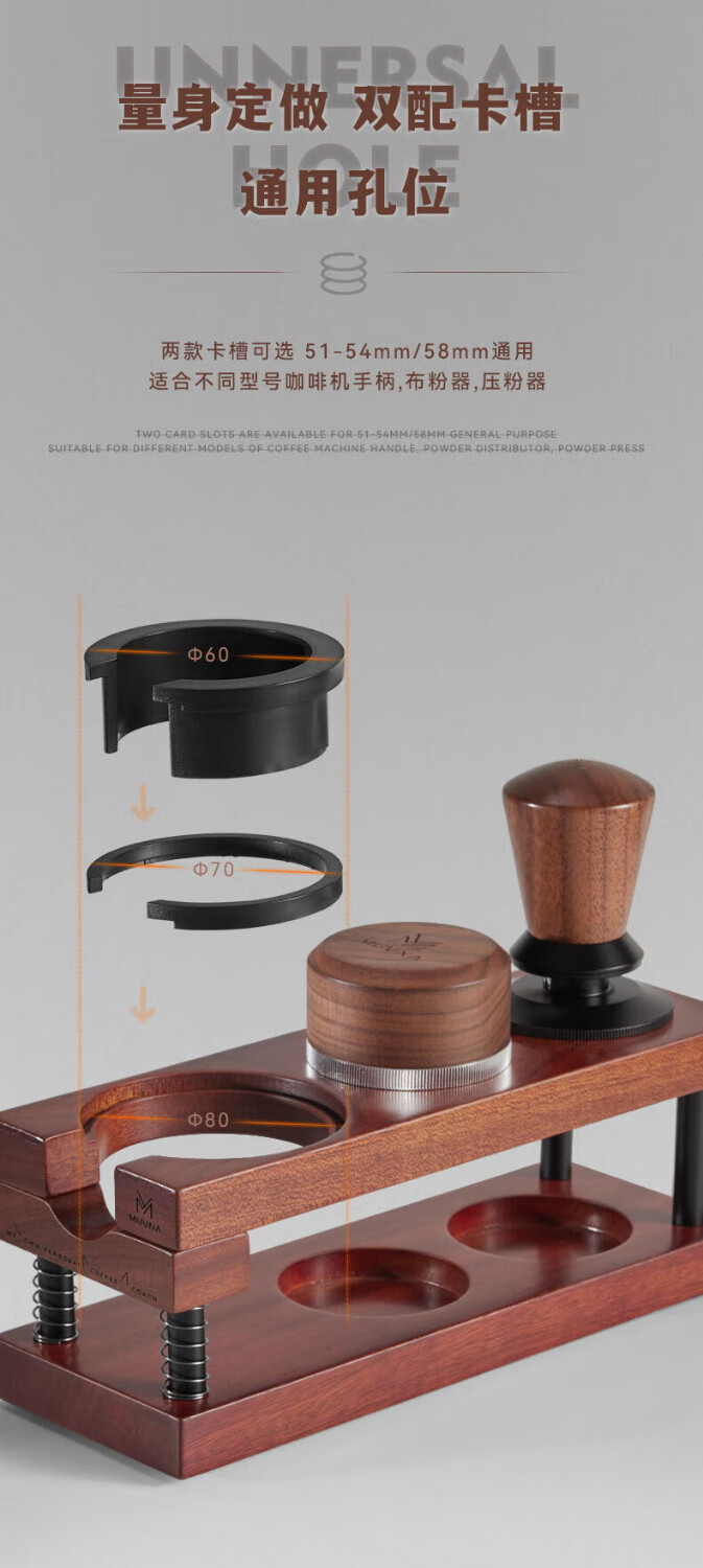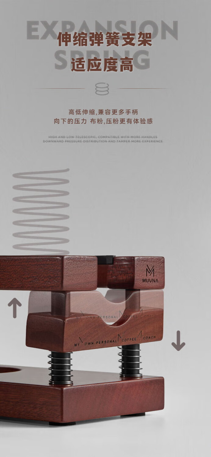 MUVNA coffee solid wood press powder seat handle storage bracket powder distributor powder press base 51/53/58mm solid wood spring press powder seat 51-54-58 universal