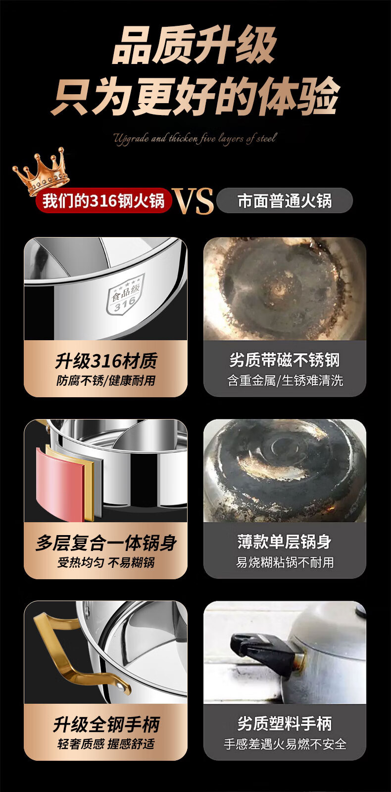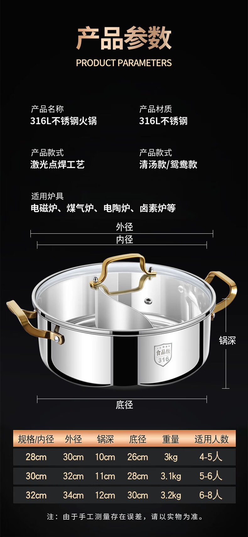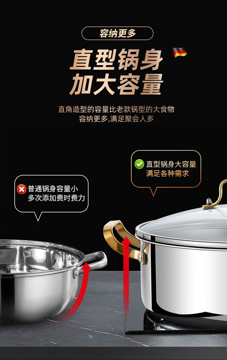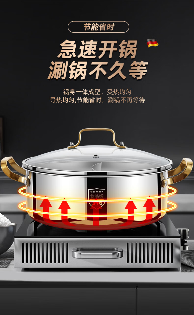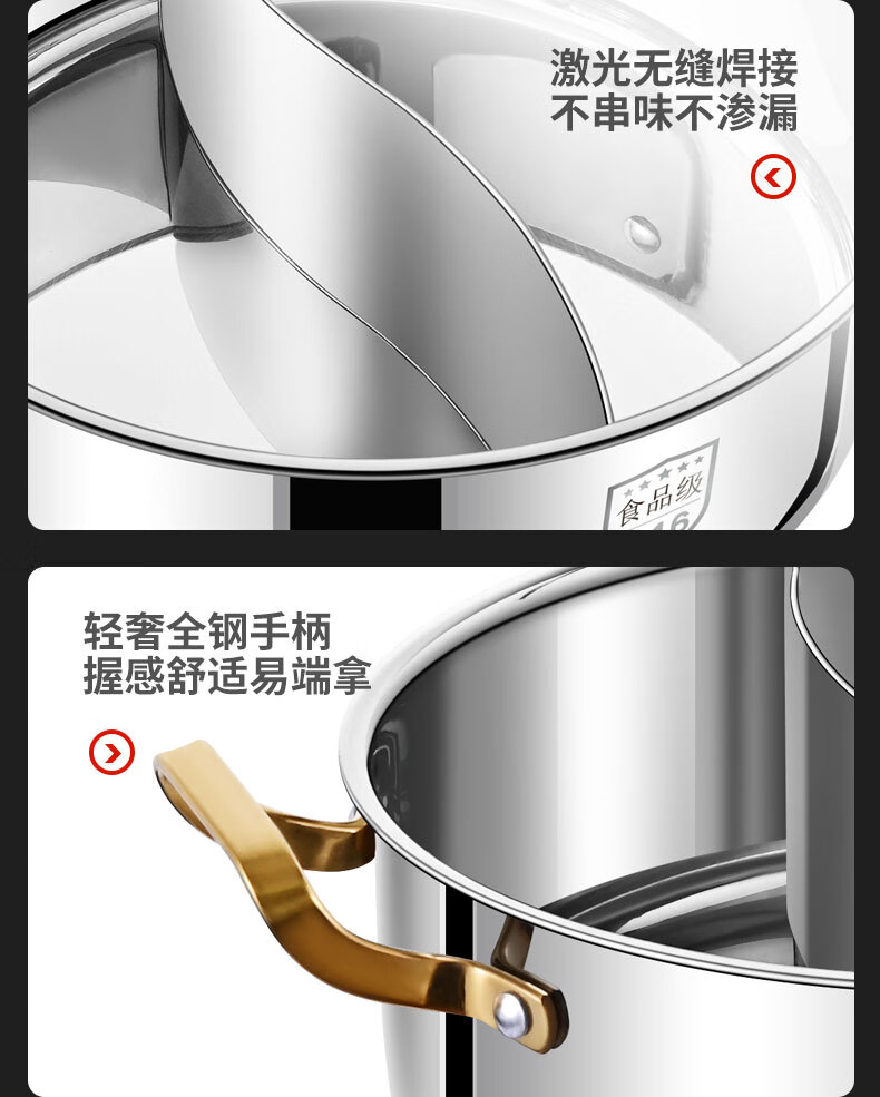 Clang household Yuanyang pot induction cooker hot pot basin household one-piece shabu-shabu thickened 316 stainless steel hot pot pot Yuanyang pot seamless welding 34cm