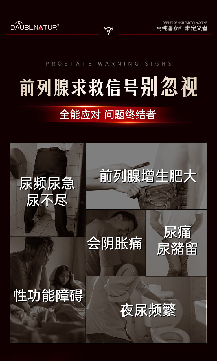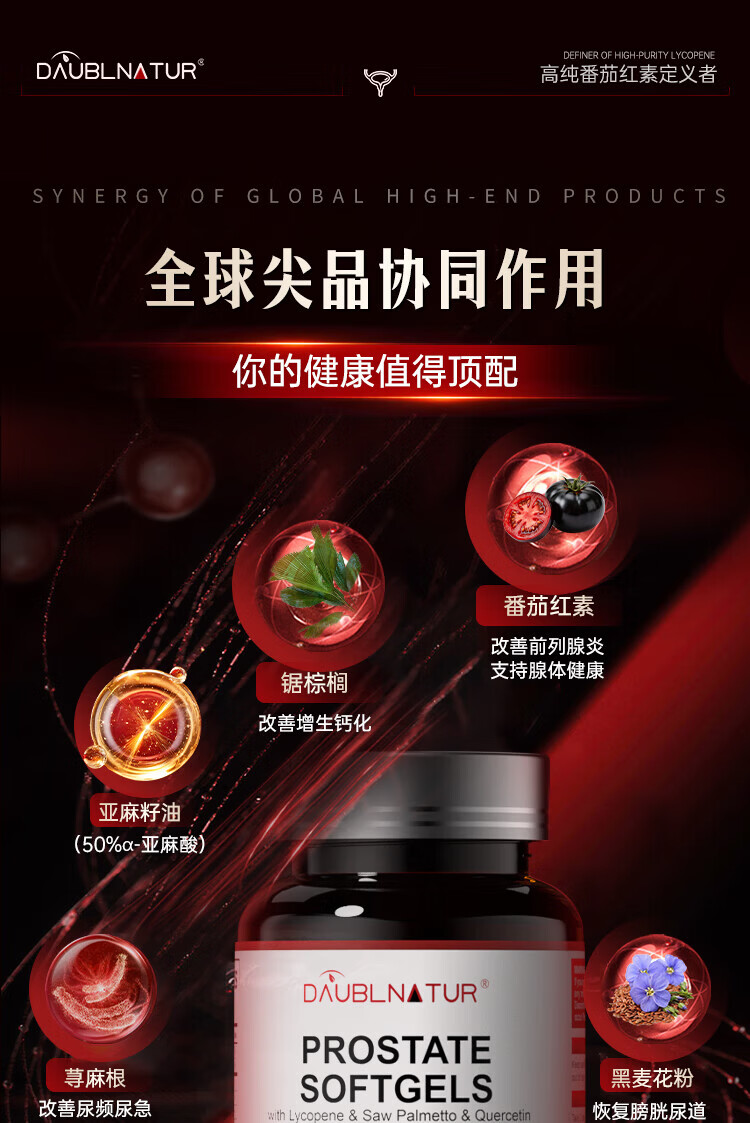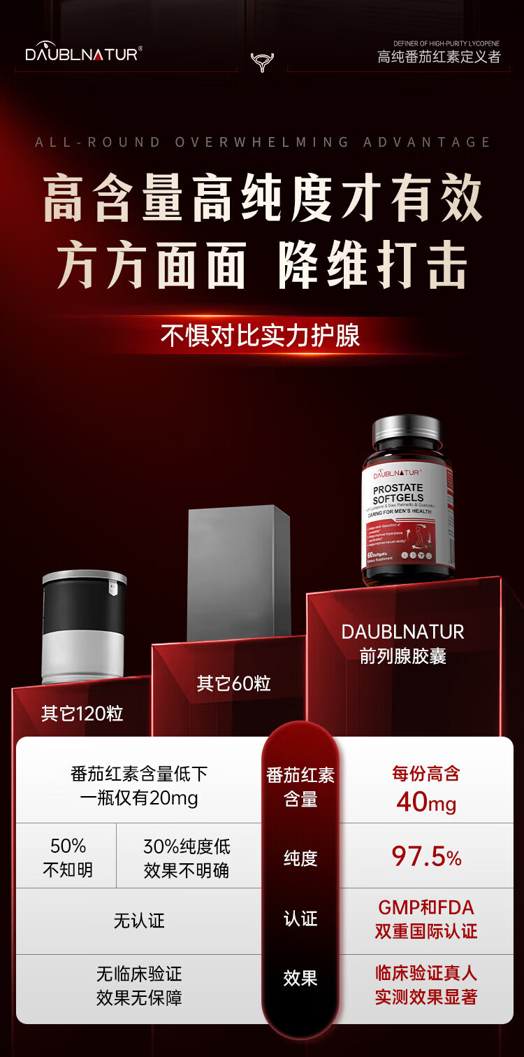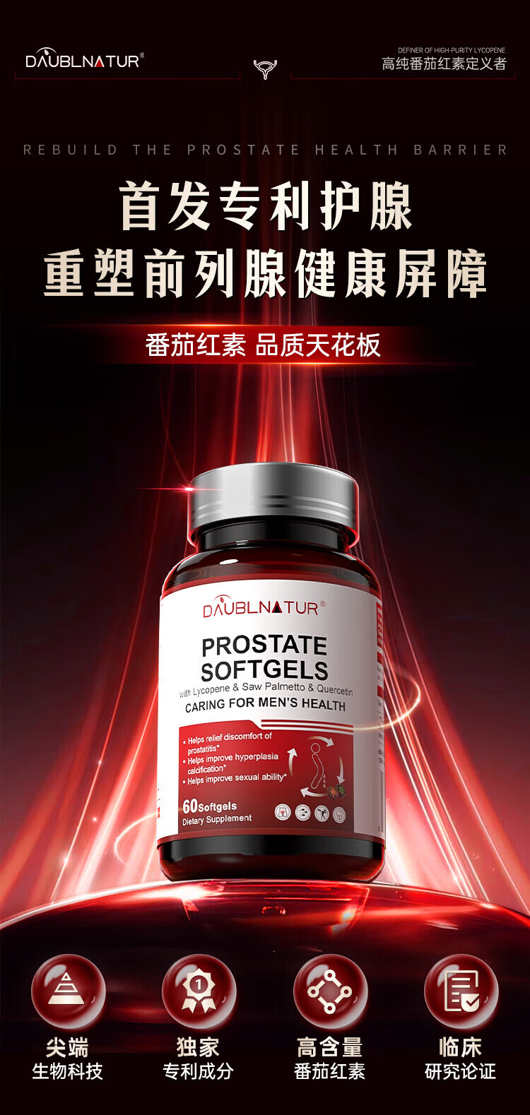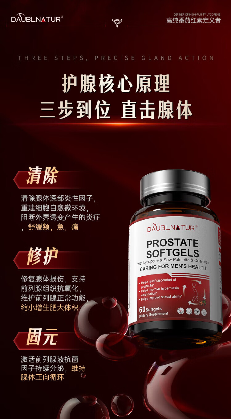 DAUBLNATUR Lycopene Prostate Frequent Urination Urinary Urination Incomplete Nocturia Multiple Hyperplasia Calcification Perineal Pain Urinary Drip 7 Bottles Consolidated (5 Bottles Price, 7 Bottles Really)