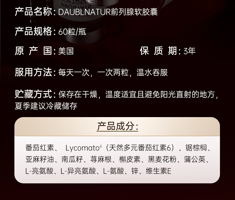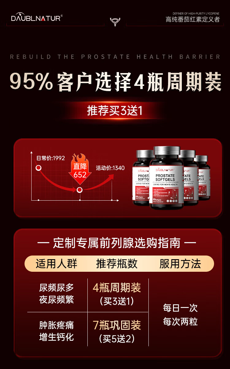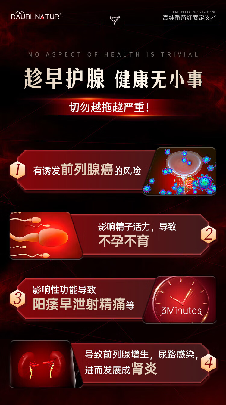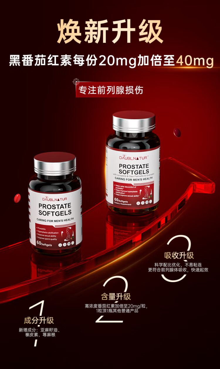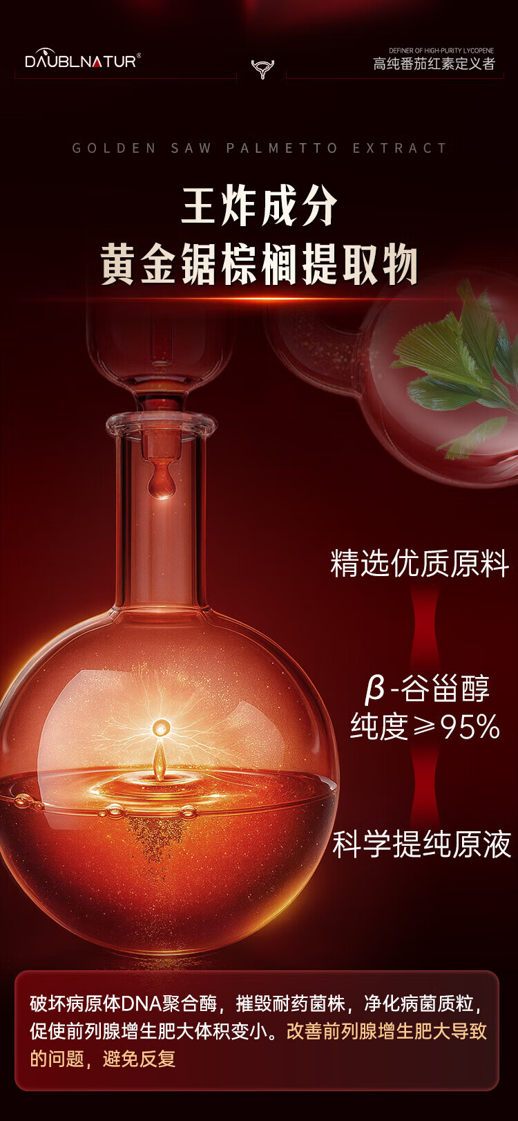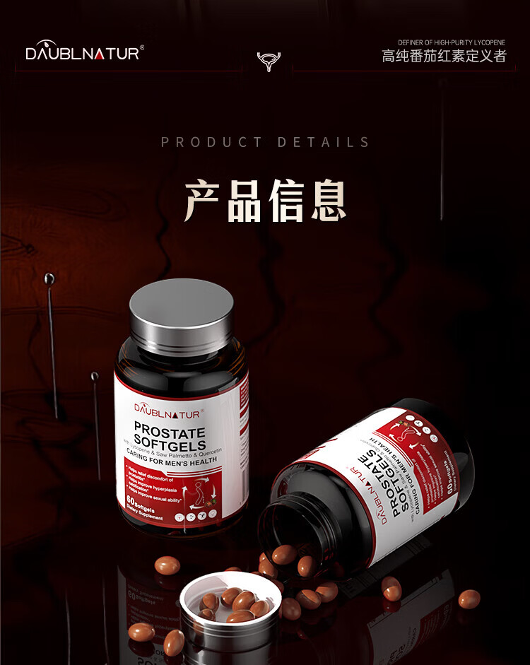 DAUBLNATUR Lycopene Prostate Frequent Urination Urinary Urination Incomplete Nocturia Multiple Hyperplasia Calcification Perineal Pain Urinary Drip 7 Bottles Consolidated (5 Bottles Price, 7 Bottles Really)