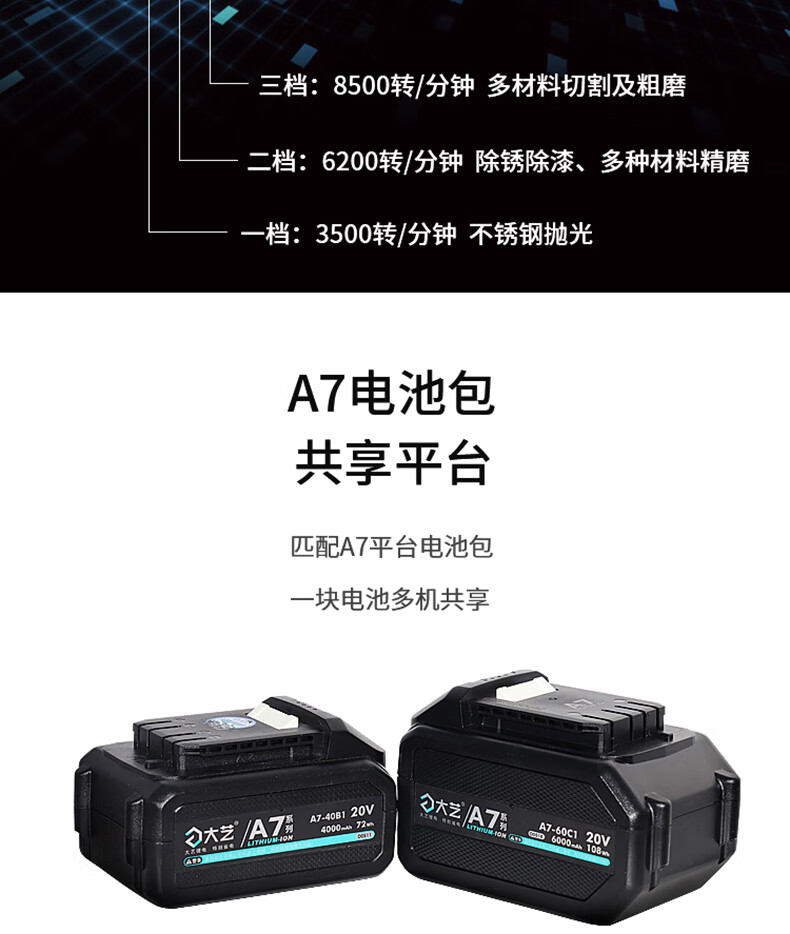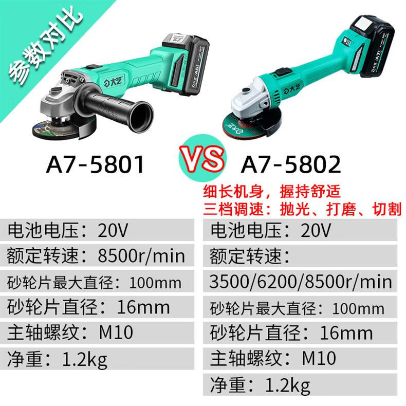 Dayi brushless lithium angle grinder A7-5802/5801 rechargeable household multi-function cutting machine polishing hand sand Dayi original 5801 bare head universal A7 battery