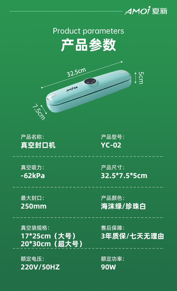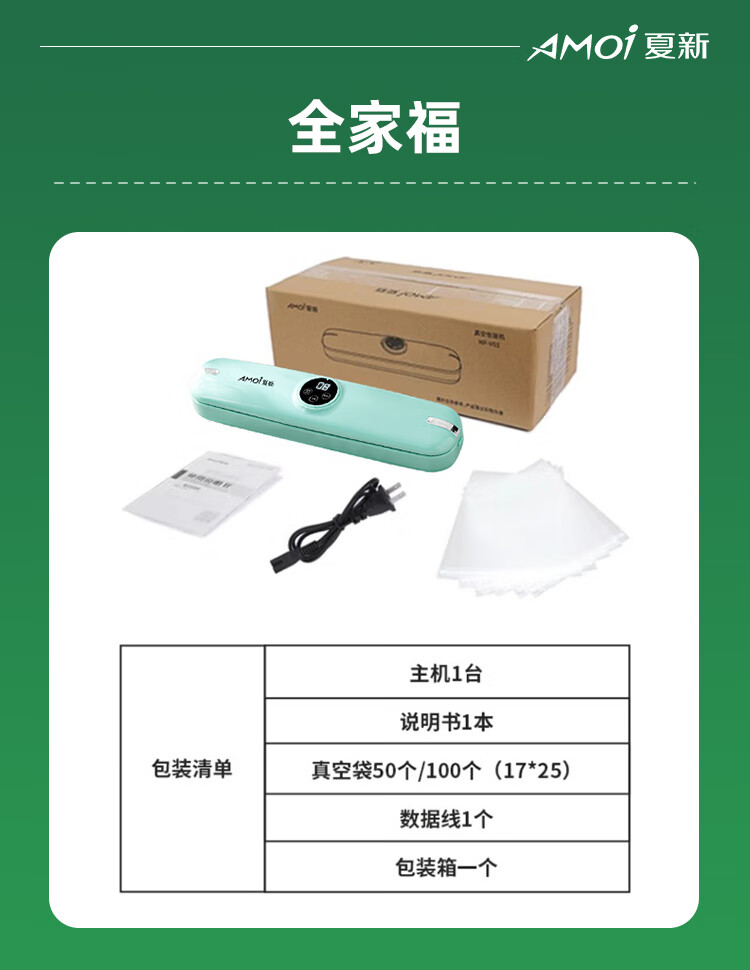 Xia Xin vacuum sealing machine household plastic sealing compression bag vacuum packaging machine fresh kitchen supplies heat sealing machine bag sealing artifact 17*25cm*19 silk (50 pieces)