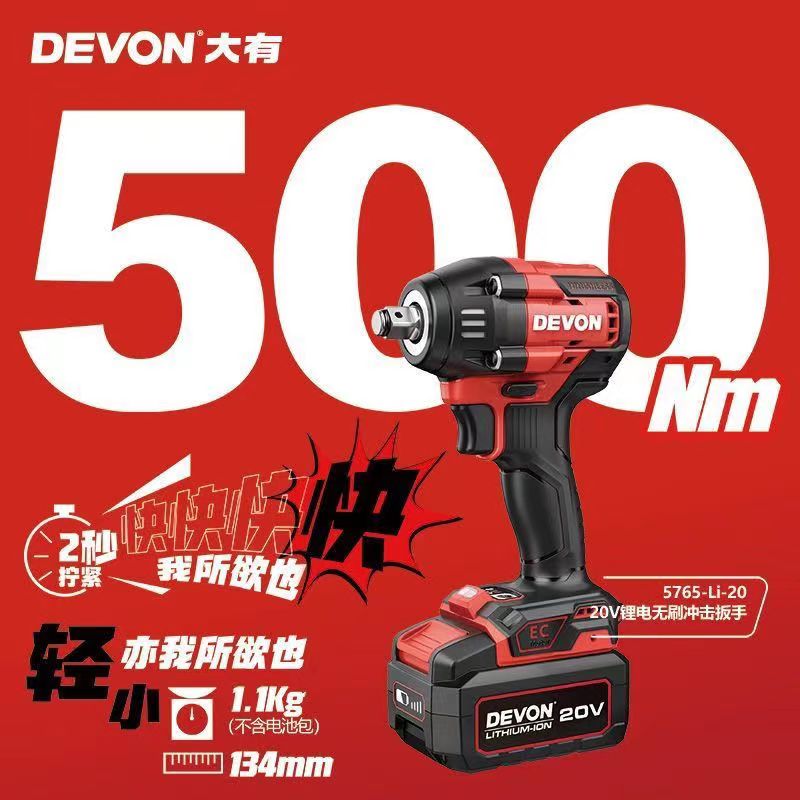 Dayou 5765 Dayou electric wrench 500 N high torque impact wrench rechargeable brushless powerful auto repair lithium electric wind cannon. If you need accessories, please contact customer service *If you take a photo, it will be sent bare by default.