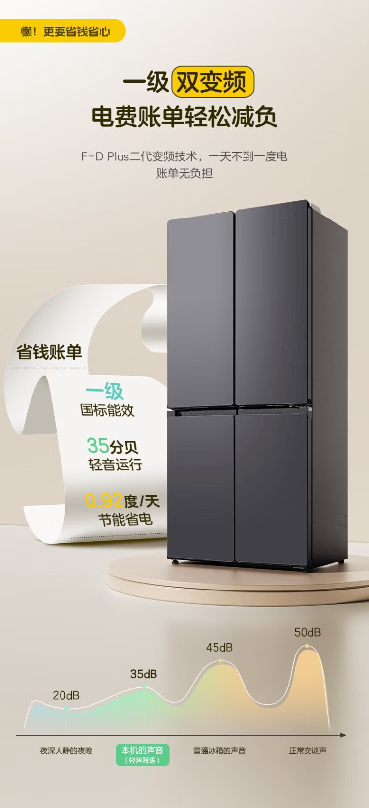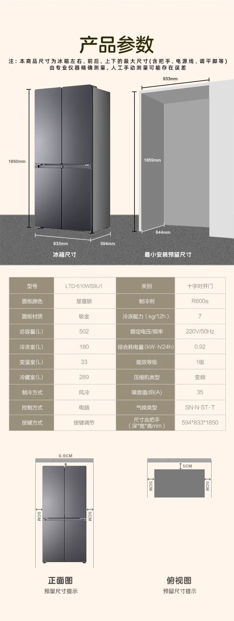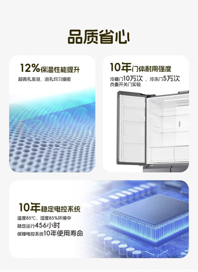 Haier refrigerator 502 liter double cycle ultra-thin can be embedded in four-door cross double-door first-class energy efficiency dual frequency conversion within 60cm large capacity national subsidy leader series 510 lazy series + 594mm ultra-thin + double sterilization + three-speed temperature change
