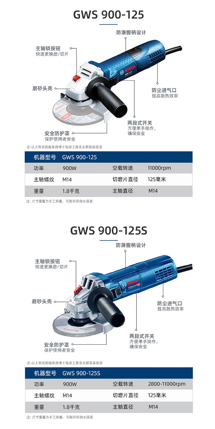 Bosch Bosch angle grinder GWS900-125 grinder polisher one-hand cutting machine 220V plug-in shaft diameter 14 GWS 900-125 S M14