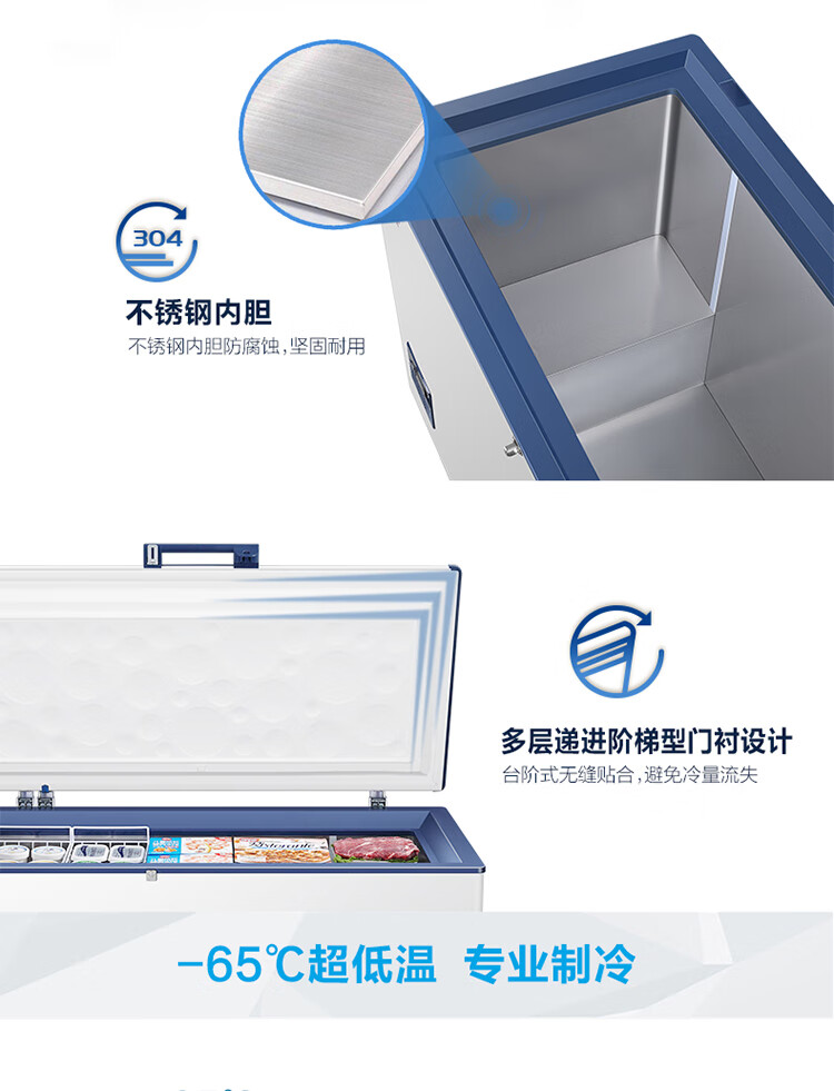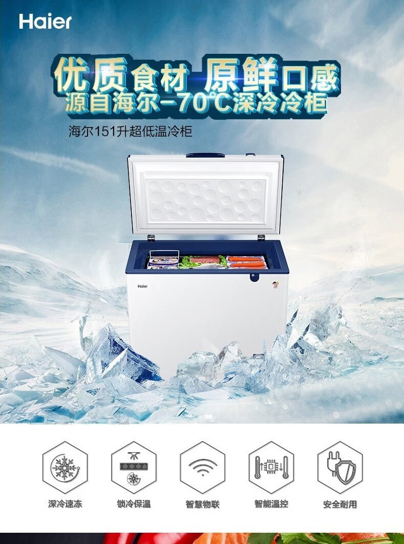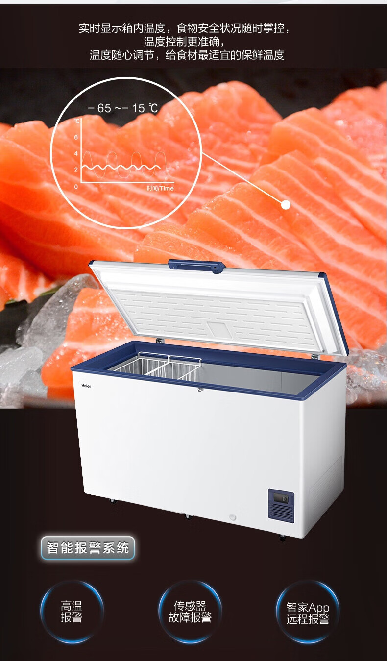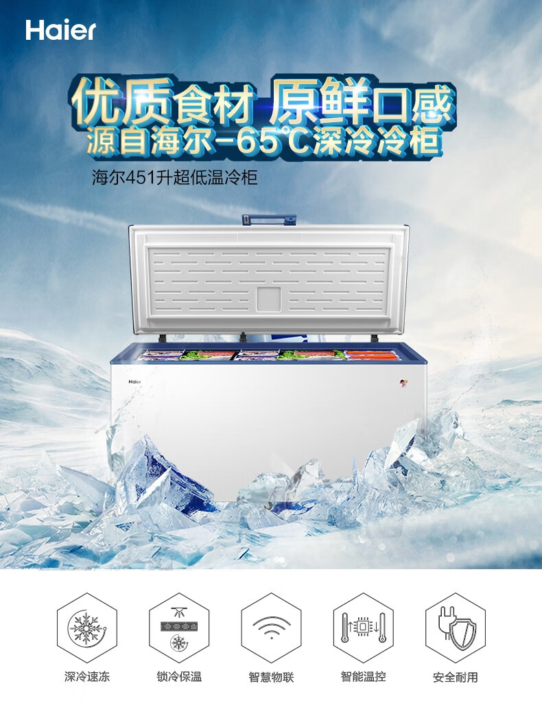 Haier large-capacity ultra-low temperature freezer for supermarkets - 65/-70 C cryogenic quick-freezing refrigerator -65 DW-60W451EU1 451L deep-freezing quick freezing + intelligent IoT + locking and thermal insulation
